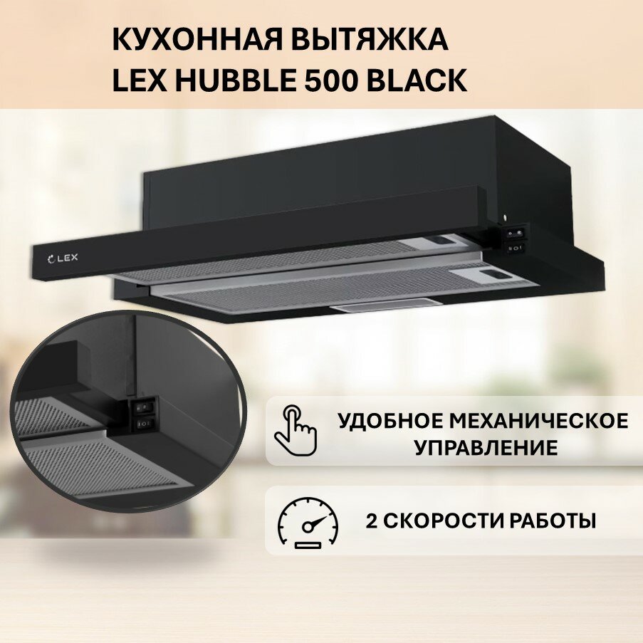 Вытяжка телескопическая LEX Hogan 500 Black, 550 куб. м/час, ширина 50 см, черный, Китай