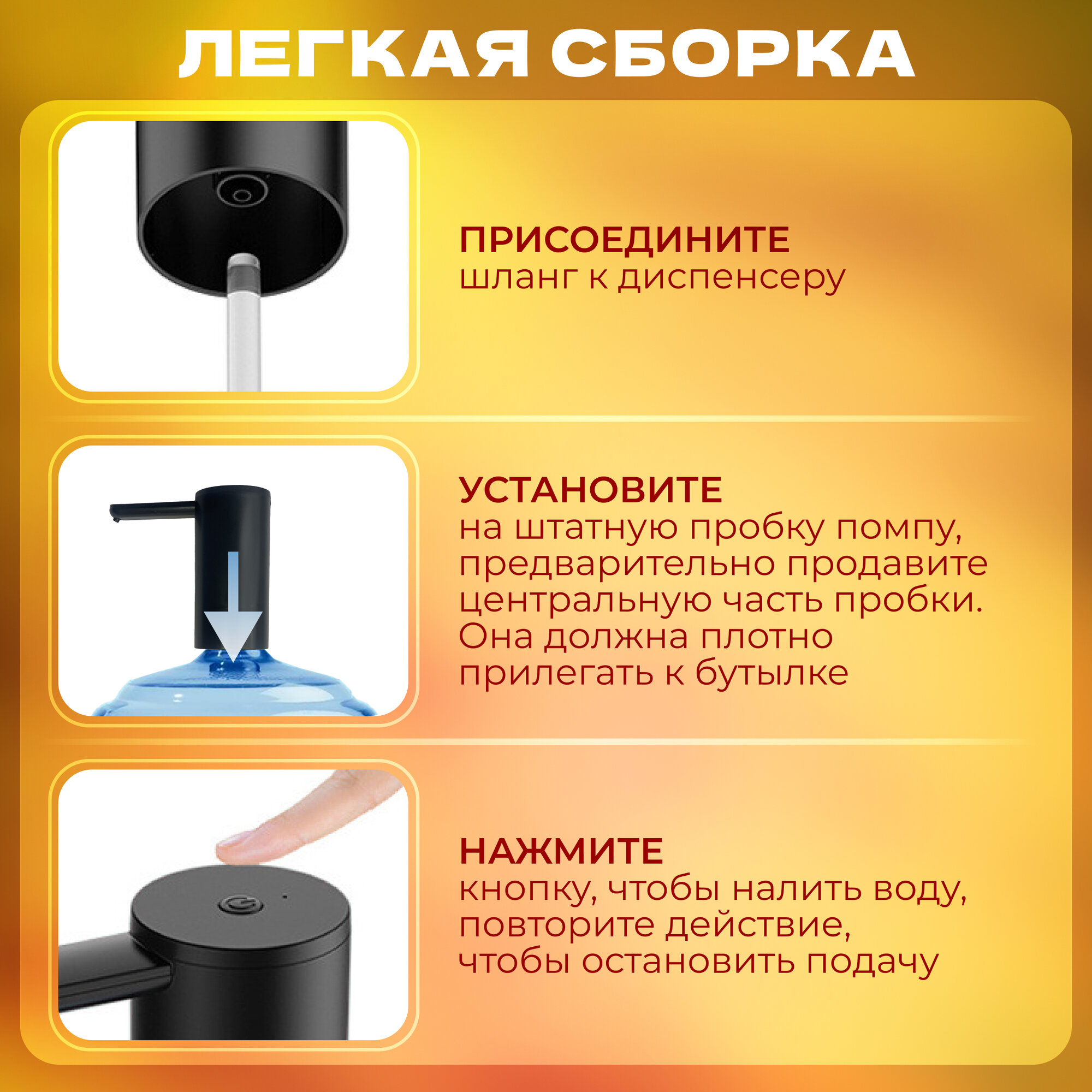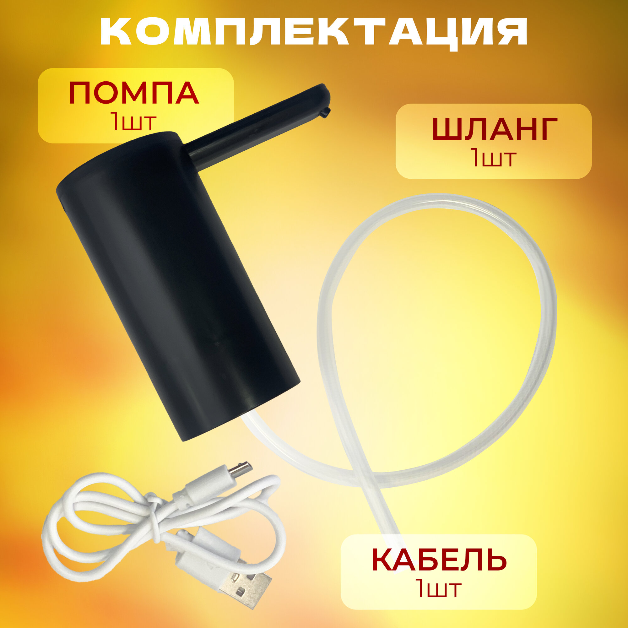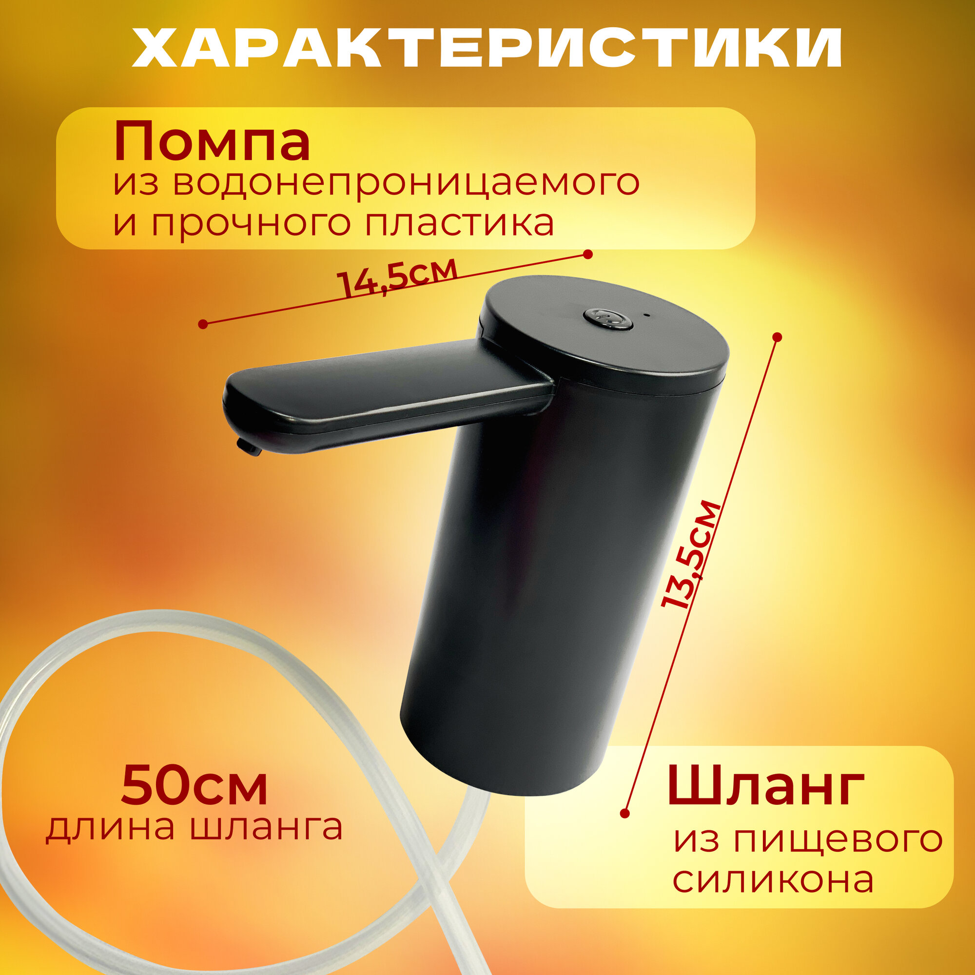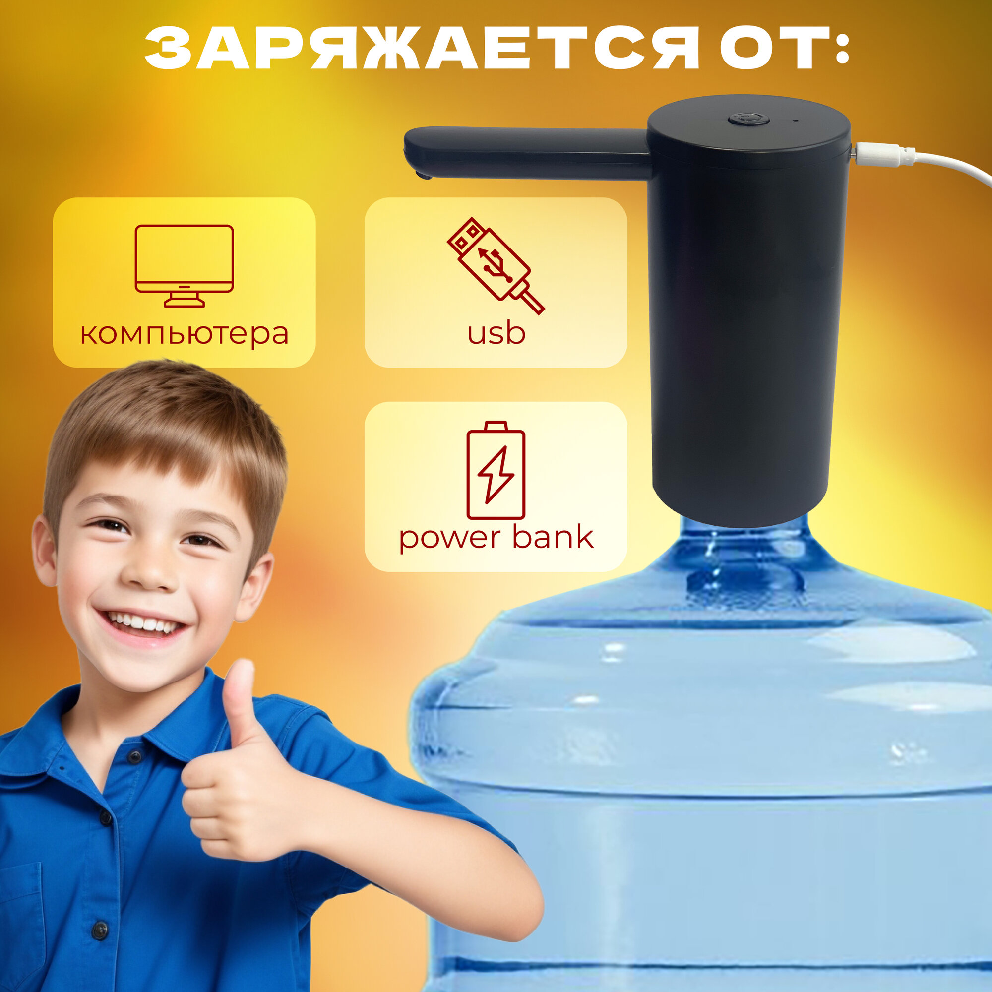 Помпа для воды электрическая на бутыль 19 литров с аккумулятором и зарядкой USB, черная интересное:
