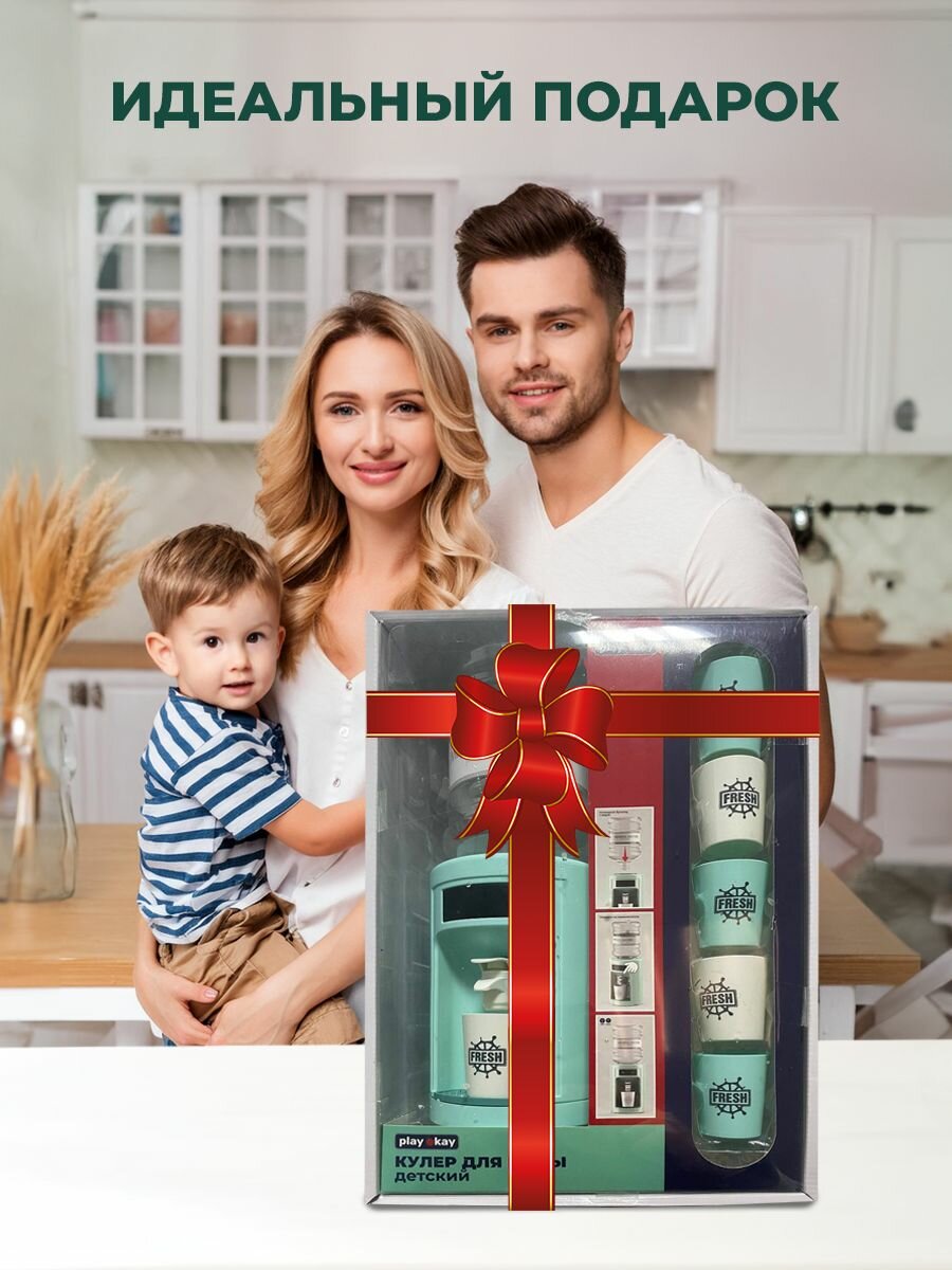 Кулер для воды детский Play Okay интерактивная игрушка для детей, питание от батареек, универсальный тип установки, мятный интересное: