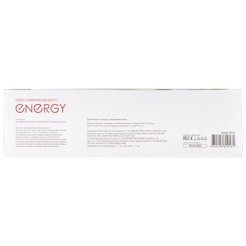 Плита электрическая Energy, EN-911, 2100 Вт, 2 конф, инфракрасная, стеклокерам, механ, пер повор, не интересное: