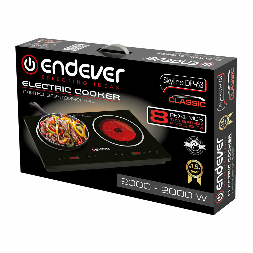 Купить Плита электрическая настольная Endever DP-63 / 4000 Вт / 2*15кг / 8 программ приготовления