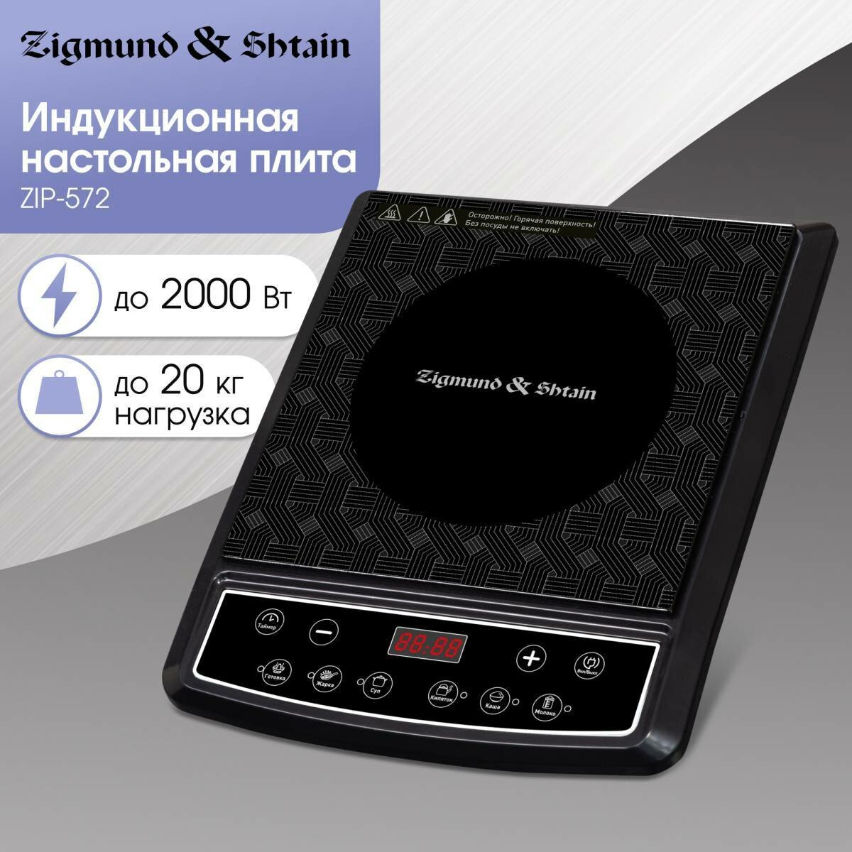 Настольная плита индукционная Zigmund & Shtain ZIP-572, 2000 Вт, черный