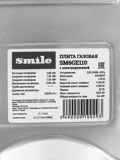 Плита комбинированная SMILE SM6GE110 темно-коричн. (стекл.кр, чугун, подсв., розжиг, таймер) интересное: