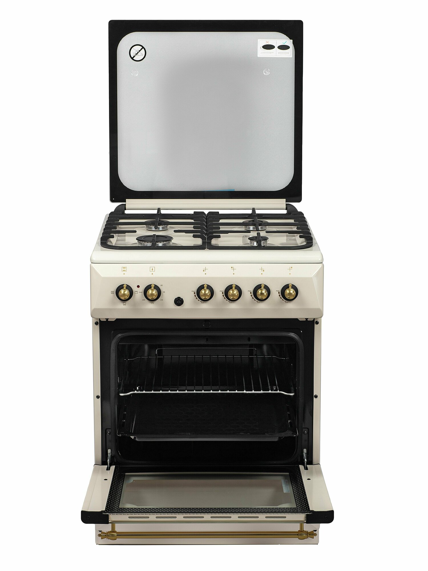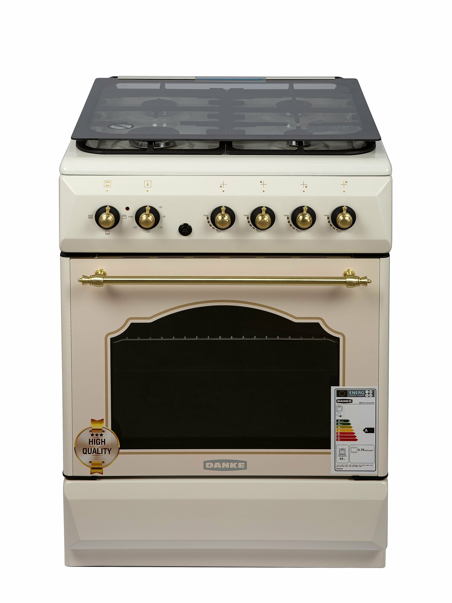 Купить Комбинированная плита Danke 6060.03гэ Ретро Бежевый цвет в размере 60x60см с электрической духовкой (чугунная решетка)