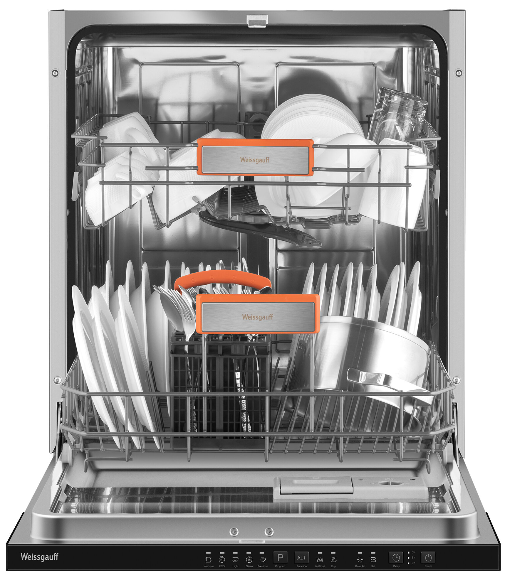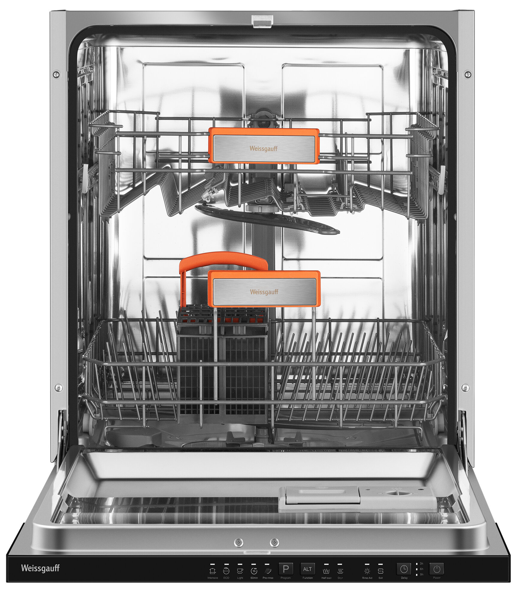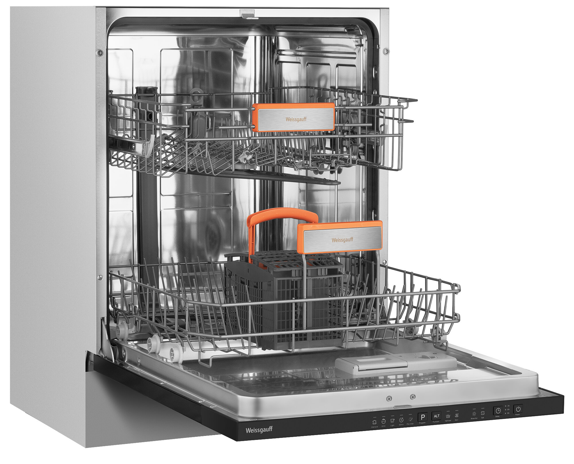 Купить Встраиваемая посудомоечная машина с лучом на полу Weissgauff BDW 6025 Infolight,3 года гарантии,12 комплектов посуды, 5 программ, дополнительная сушка, половинная загрузка, индикаторы соли и ополаскивателя, энергоэффективность A++, защита от протечек