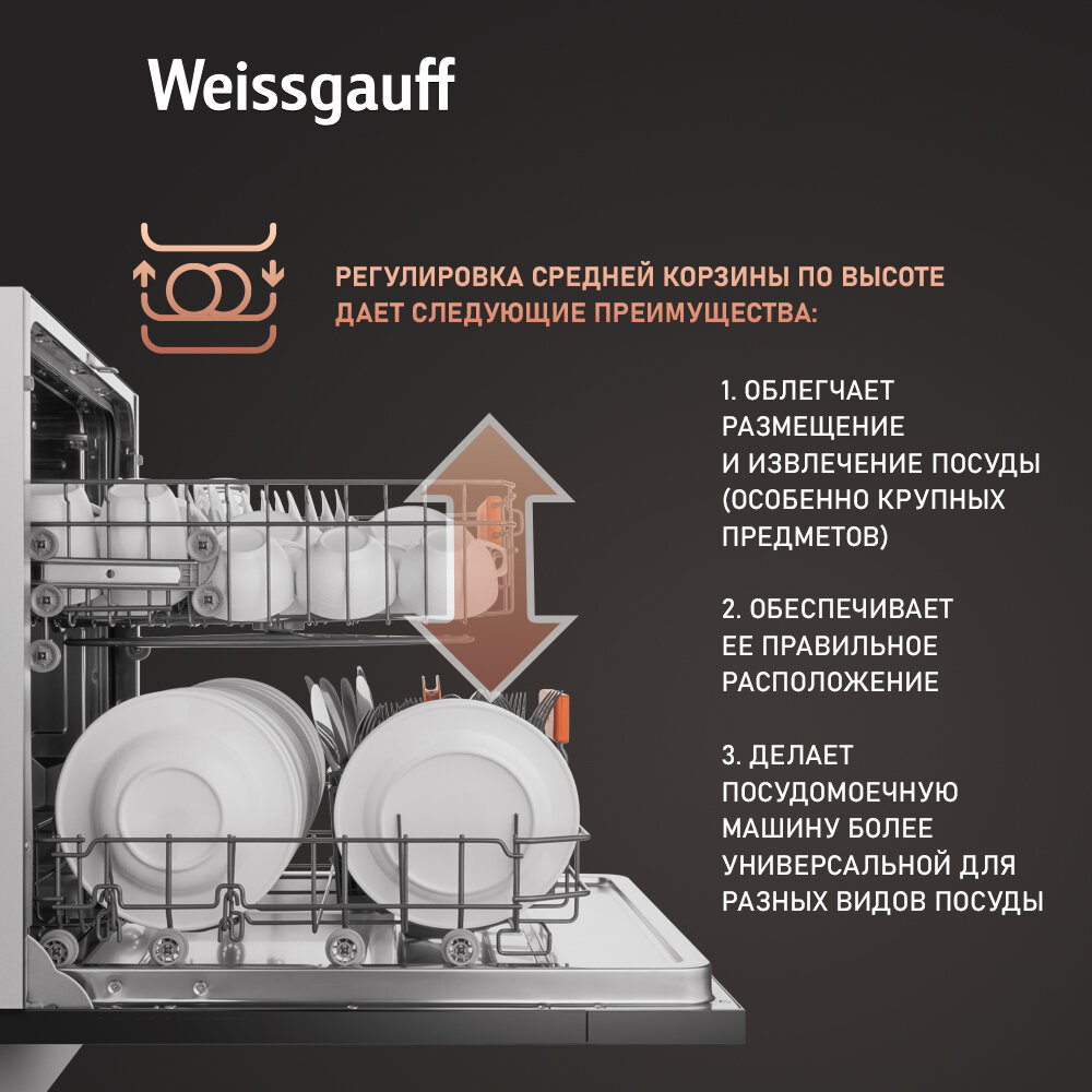 Встраиваемая посудомоечная машина с лучом на полу Weissgauff BDW 6025 Infolight, защита от протечек