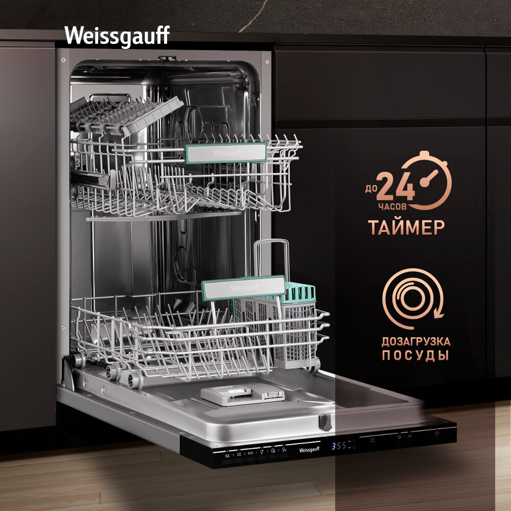 Встраиваемая посудомоечная машина Weissgauff BDW 4526 D, узкая 45 см, дозагрузка