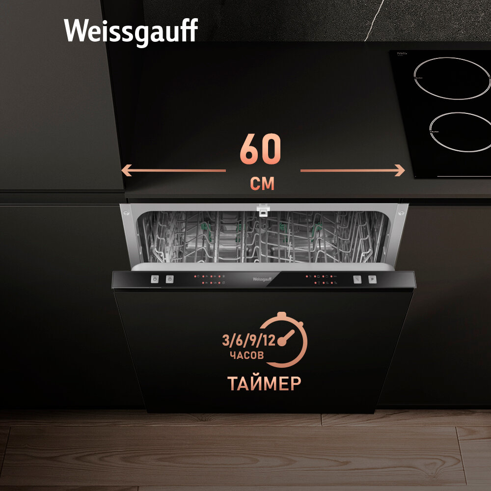 Встраиваемая посудомоечная машина Weissgauff BDW 6026, 3 года гарантии, 12 комплектов посуды, половинная загрузка, 6 программ, быстрый режим, универсальная программа, экономичная программа, таймер, дозагрузка посуды, электронное управление интересное: