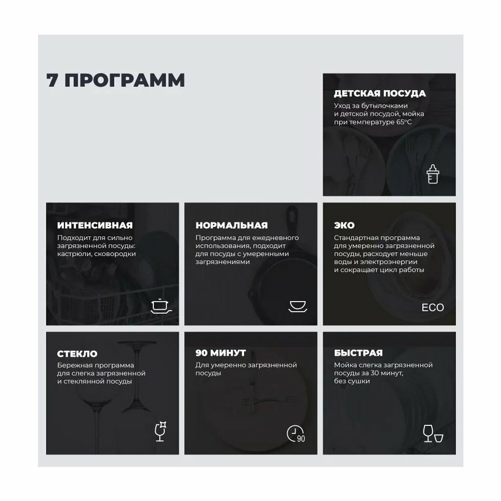 | Программы | быстрая / деликатная / интенсивная / предварительное ополаскивание/замачивание / стандартная / экономичная |