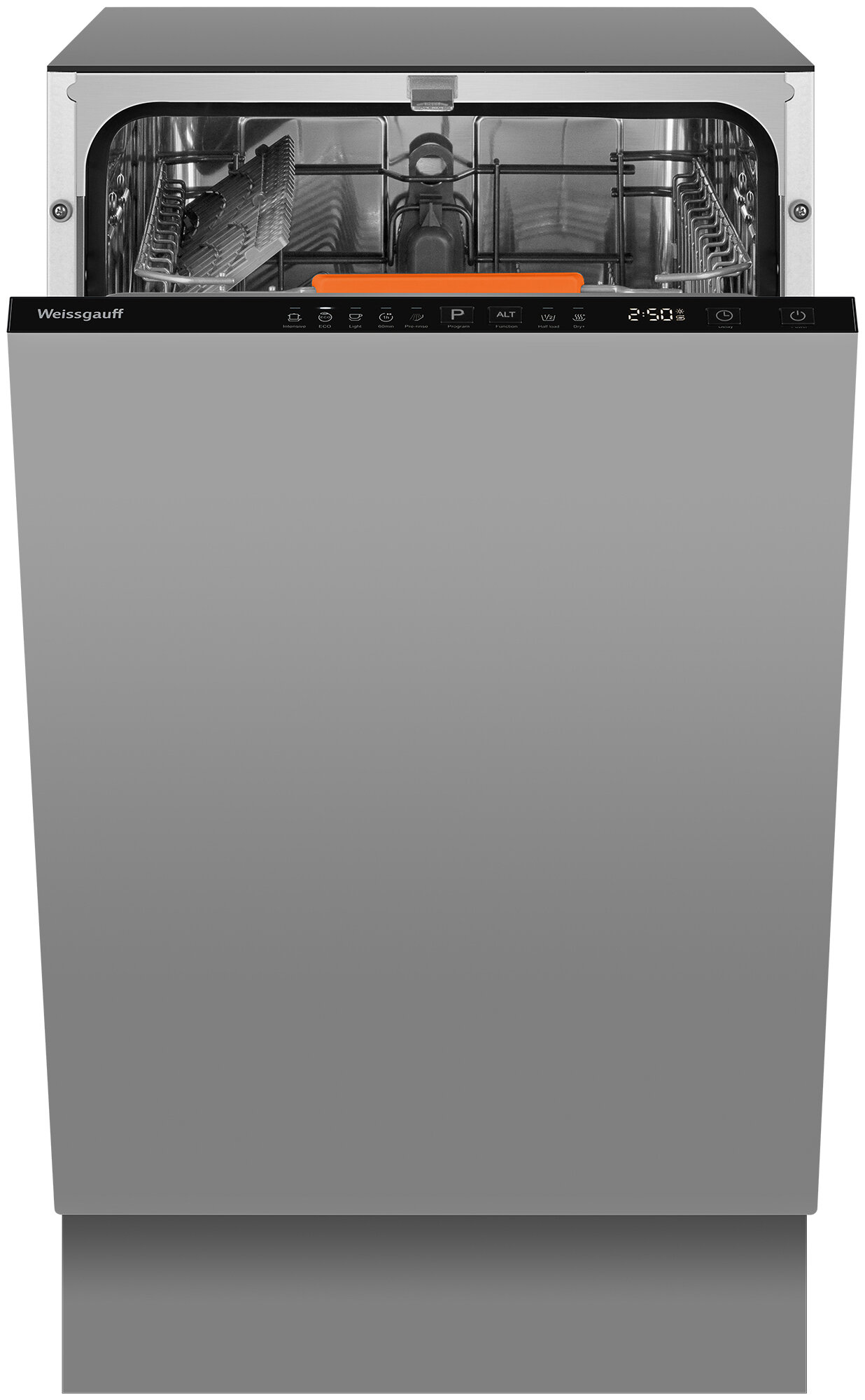 Встраиваемая посудомоечная машина с лучом на полу Weissgauff BDW 4525 D Infolight, 3 года гарантии, 9 комплектов посуды, 5 программ, половинная загрузка, дополнительная сушка, индикаторы соли и ополаскивателя, энергоэффективность А+++ интересное: