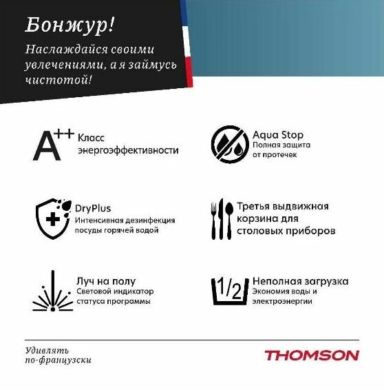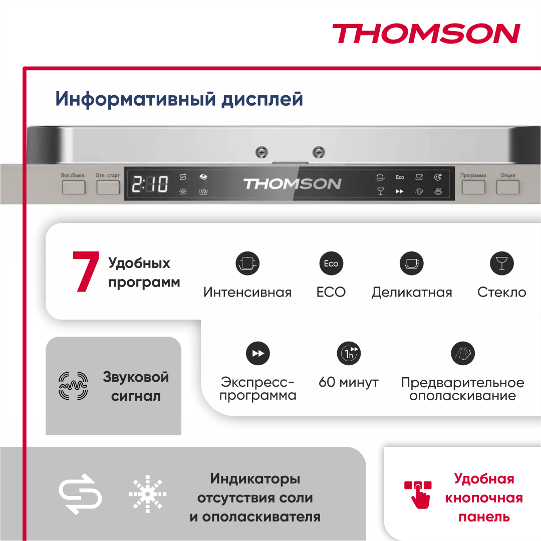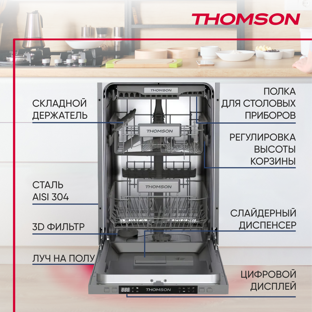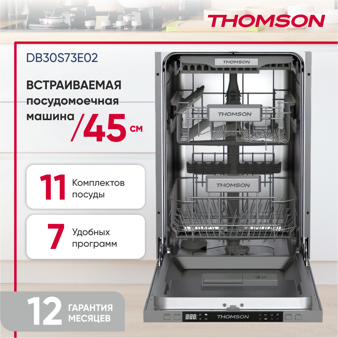 Встраиваемая посудомоечная машина THOMSON DB30S73E02 45CM, серый интересное:
