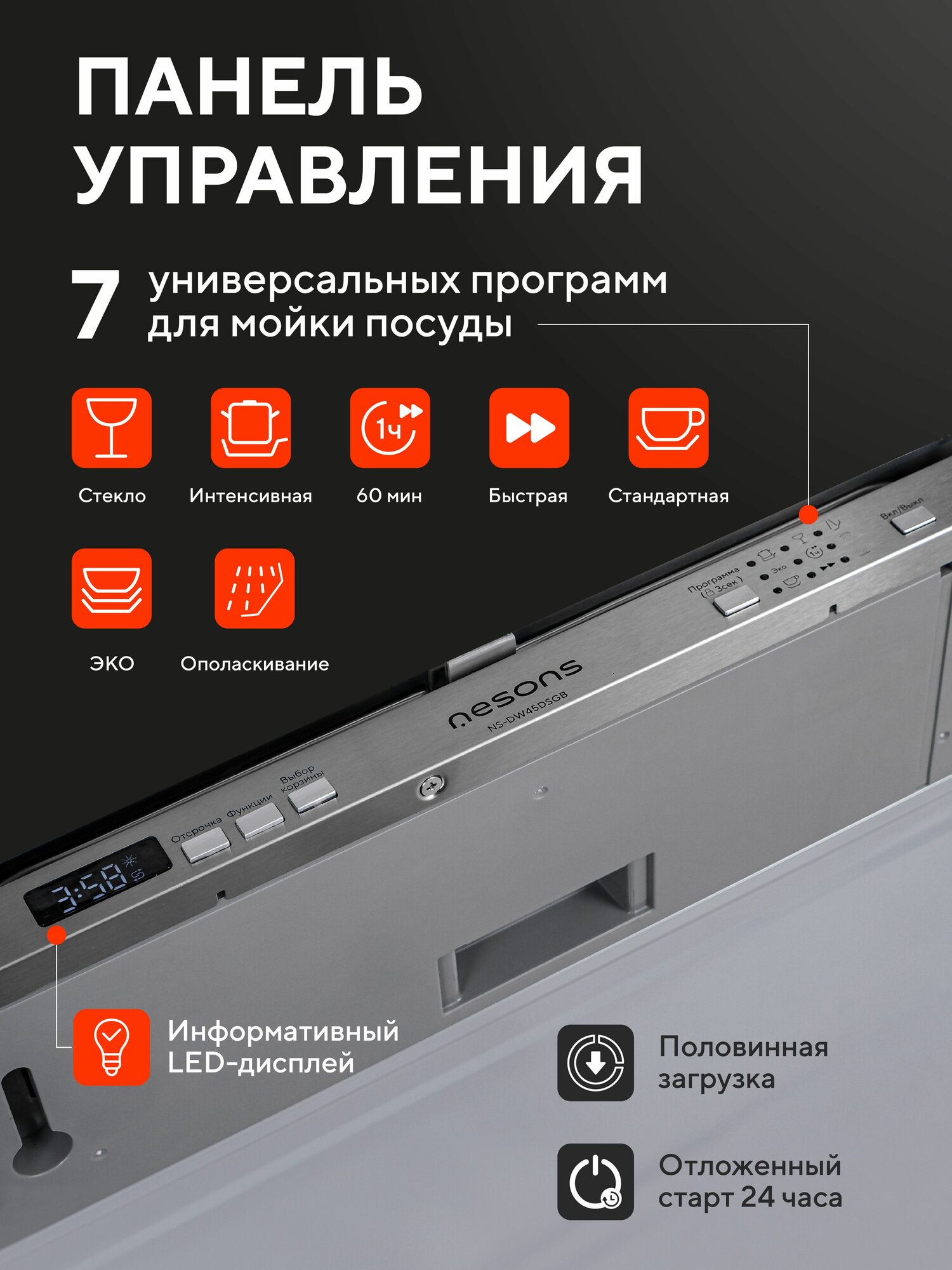 Посудомоечная машина встраиваемая 45 см NESONS NS-DW45DSGB интересное:
