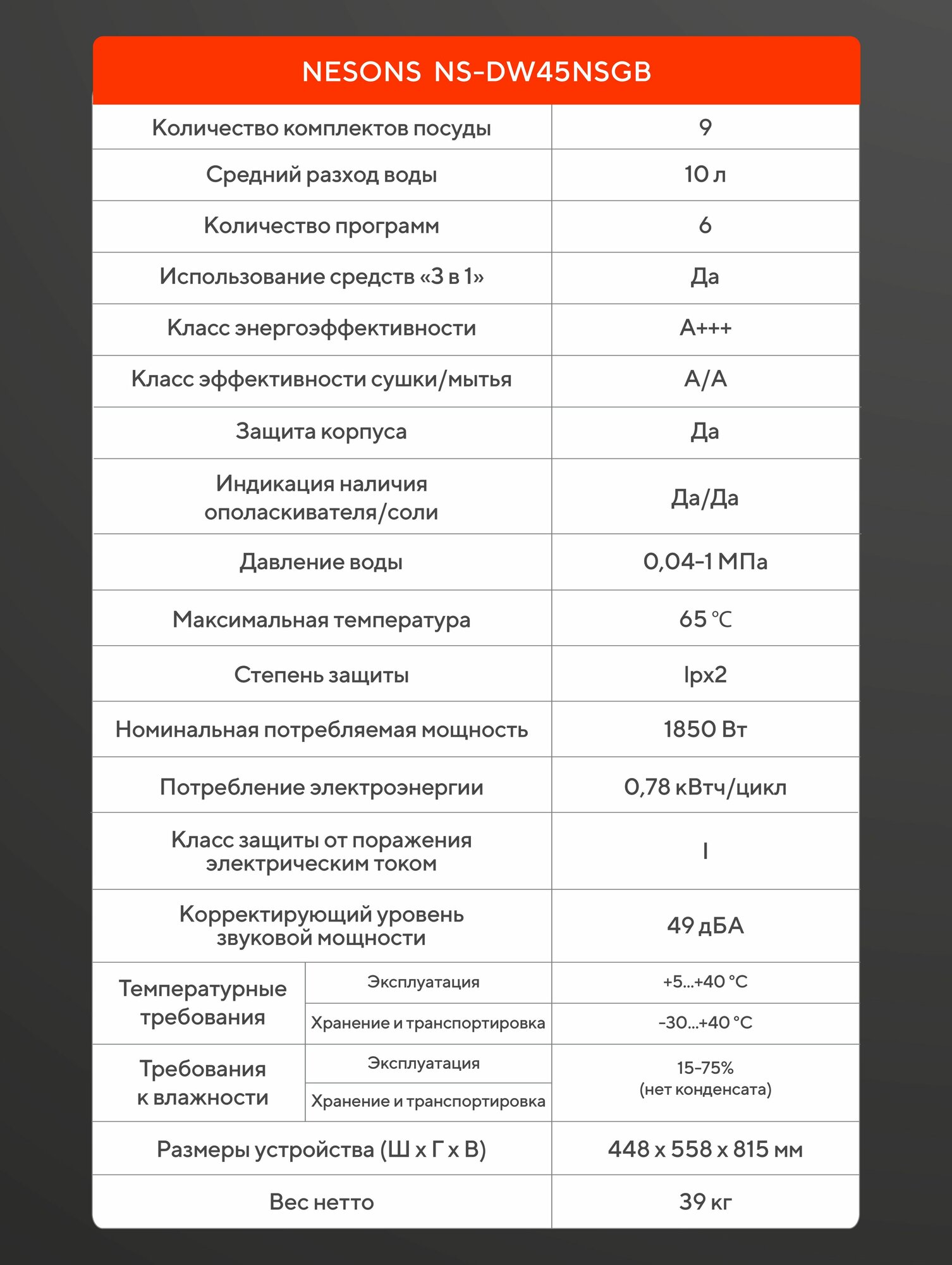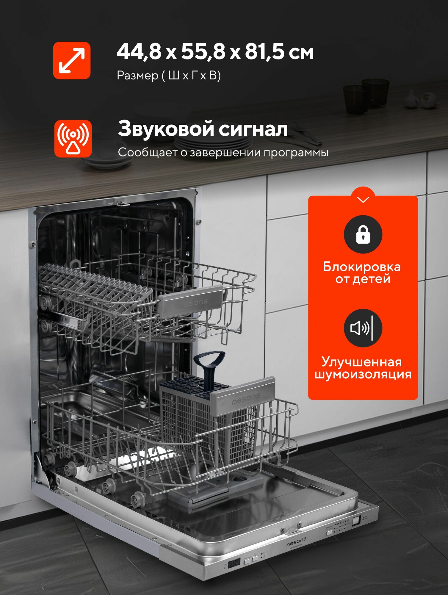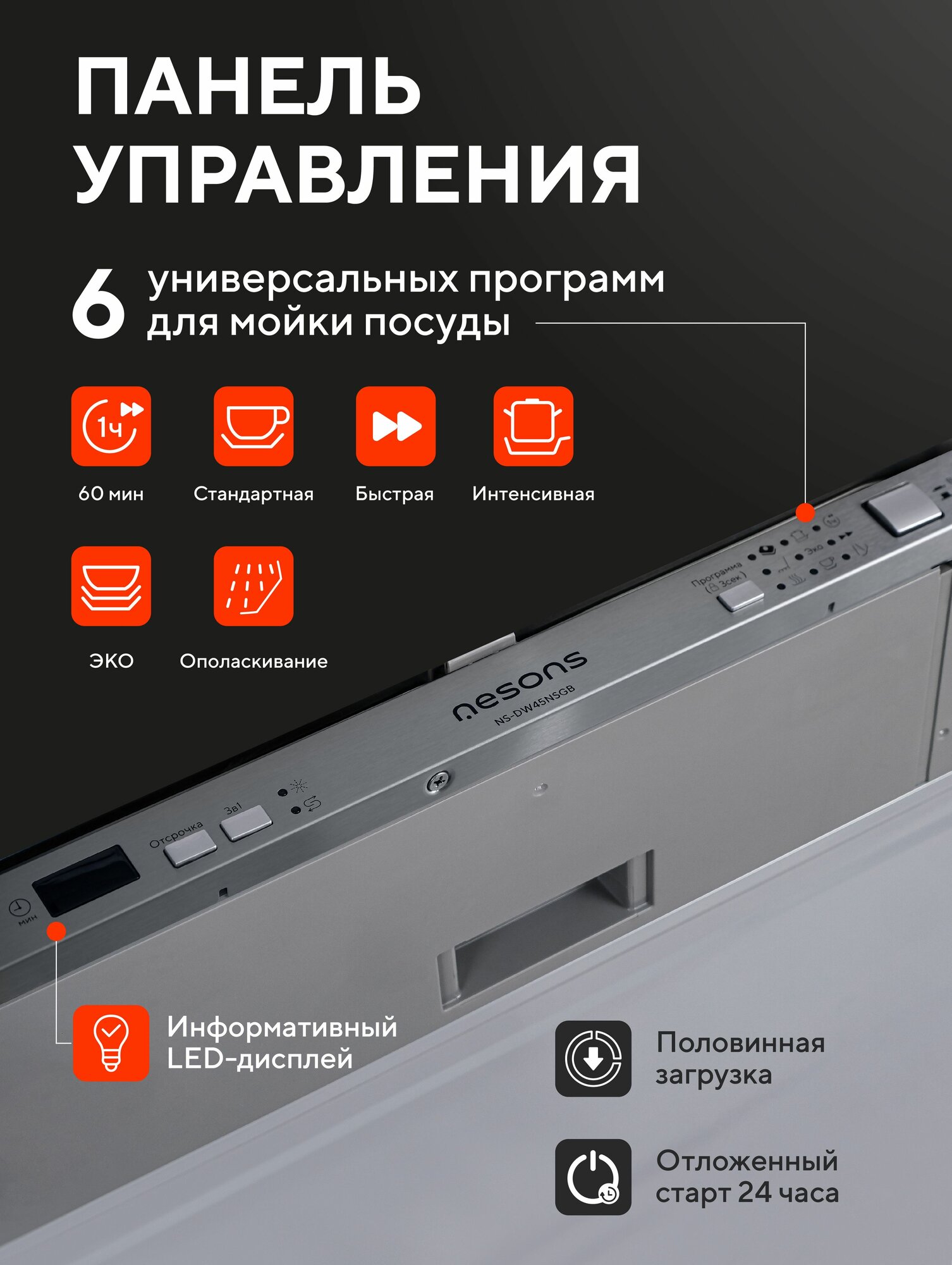 Посудомоечная машина встраиваемая 45 см NESONS NS-DW45NSGB интересное: