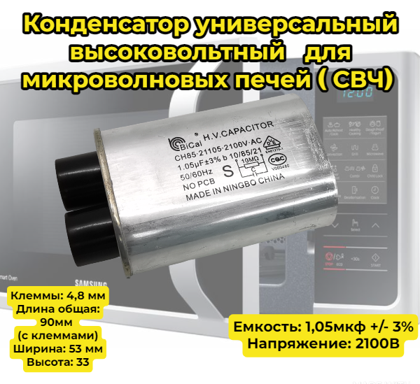 Конденсатор высоковольтный для микроволновой печи (СВЧ) 1.05 мкф. 2100В интересное: