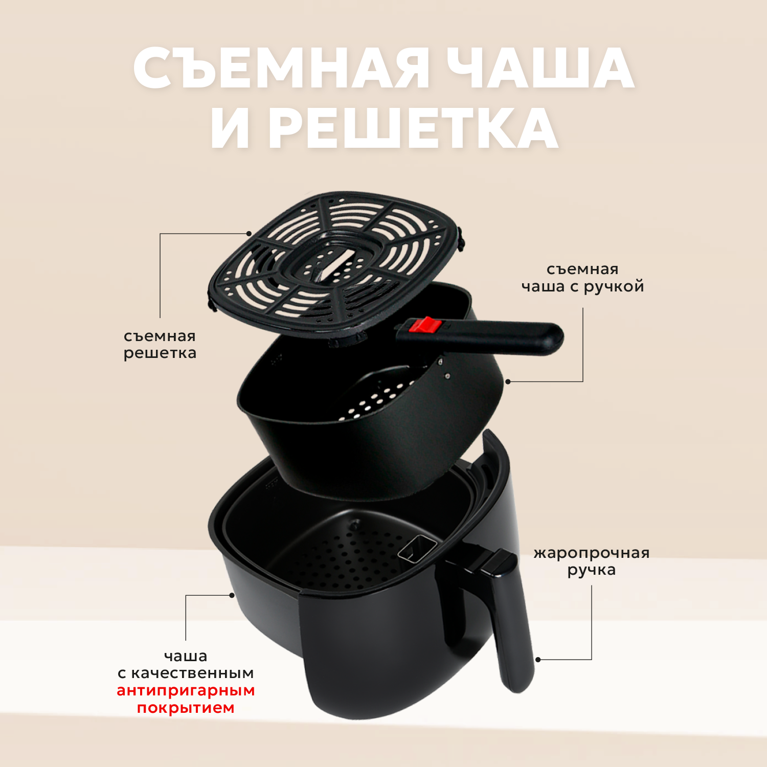 Аэрогриль с сенсорным управлением, 7 в 1, объем 4 литра, 1400 Вт, черный интересное: