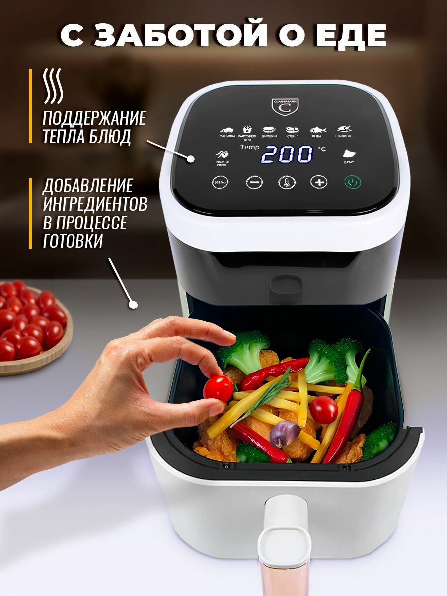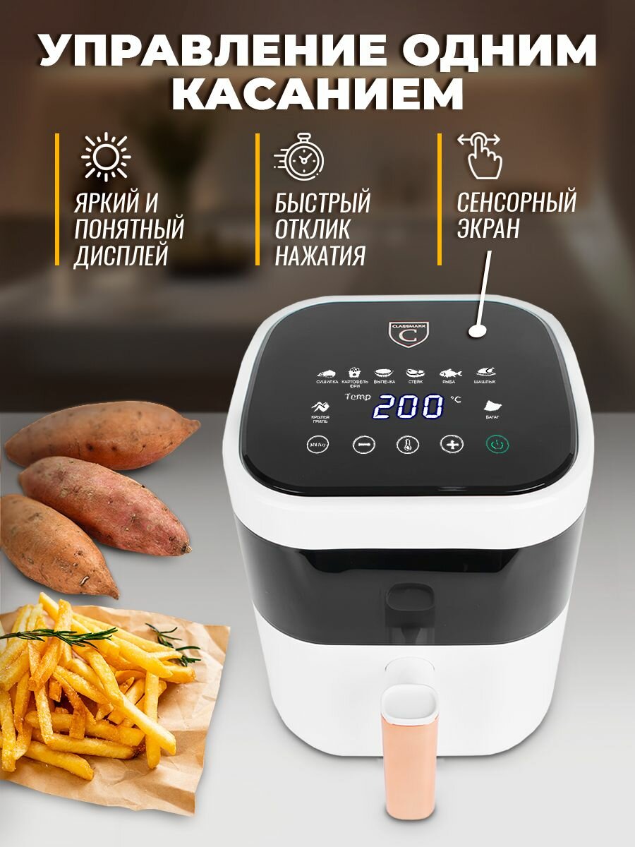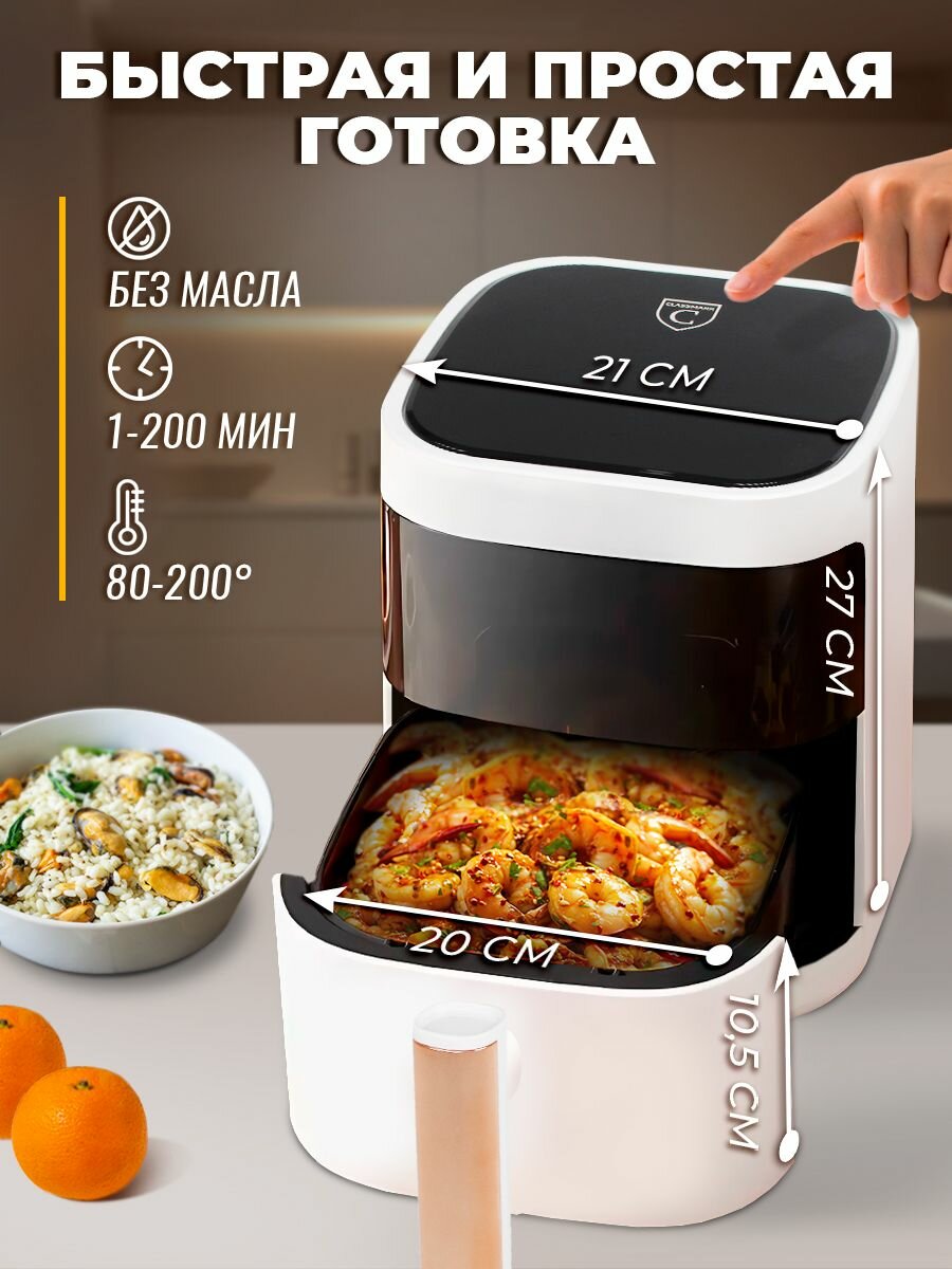 Аэрогриль электрический Classmark CH24022801 аэрофритюрница для дома, мощность 1400 Вт, объем 5 литров, черный и белый интересное: