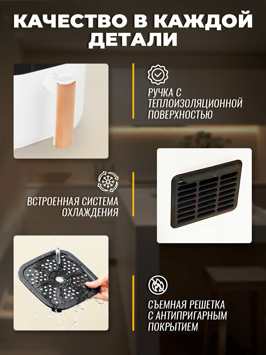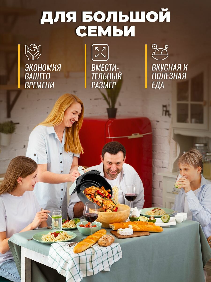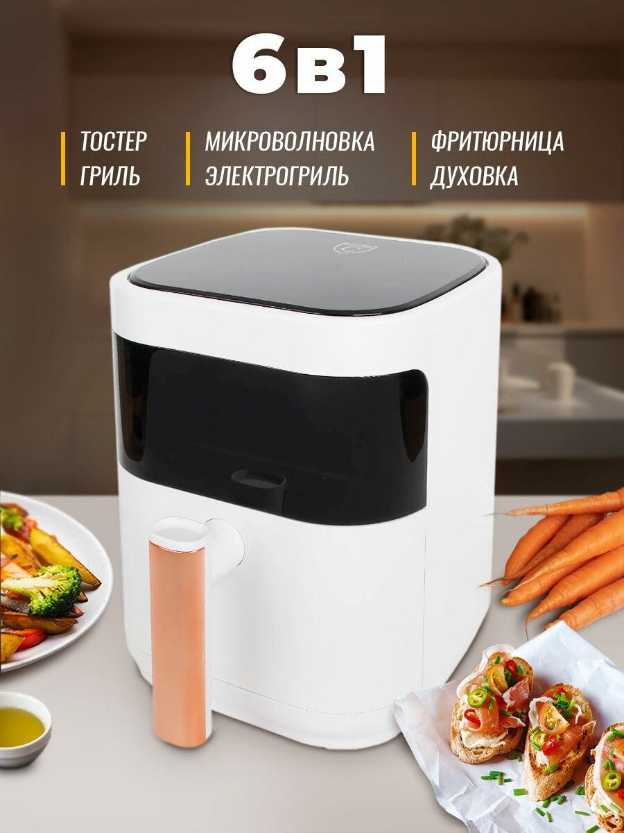 Аэрогриль электрический Classmark CH24022801 аэрофритюрница для дома, мощность 1400 Вт, объем 5 литров, черный и белый интересное: