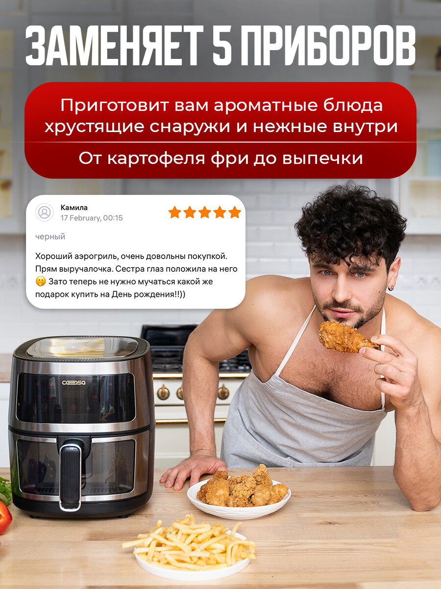 Аэрогриль-аэрофритюрница CasaComfort, модель SZ-886, 1400Вт, 5л, 8 программ приготовления интересное: