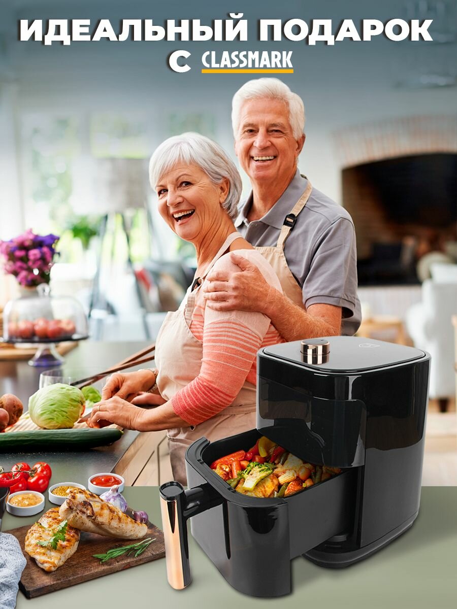 Купить Аэрогриль электрический Classmark CH24022801 аэрофритюрница для дома, мощность 1400 Вт, объем 5 литров, черный