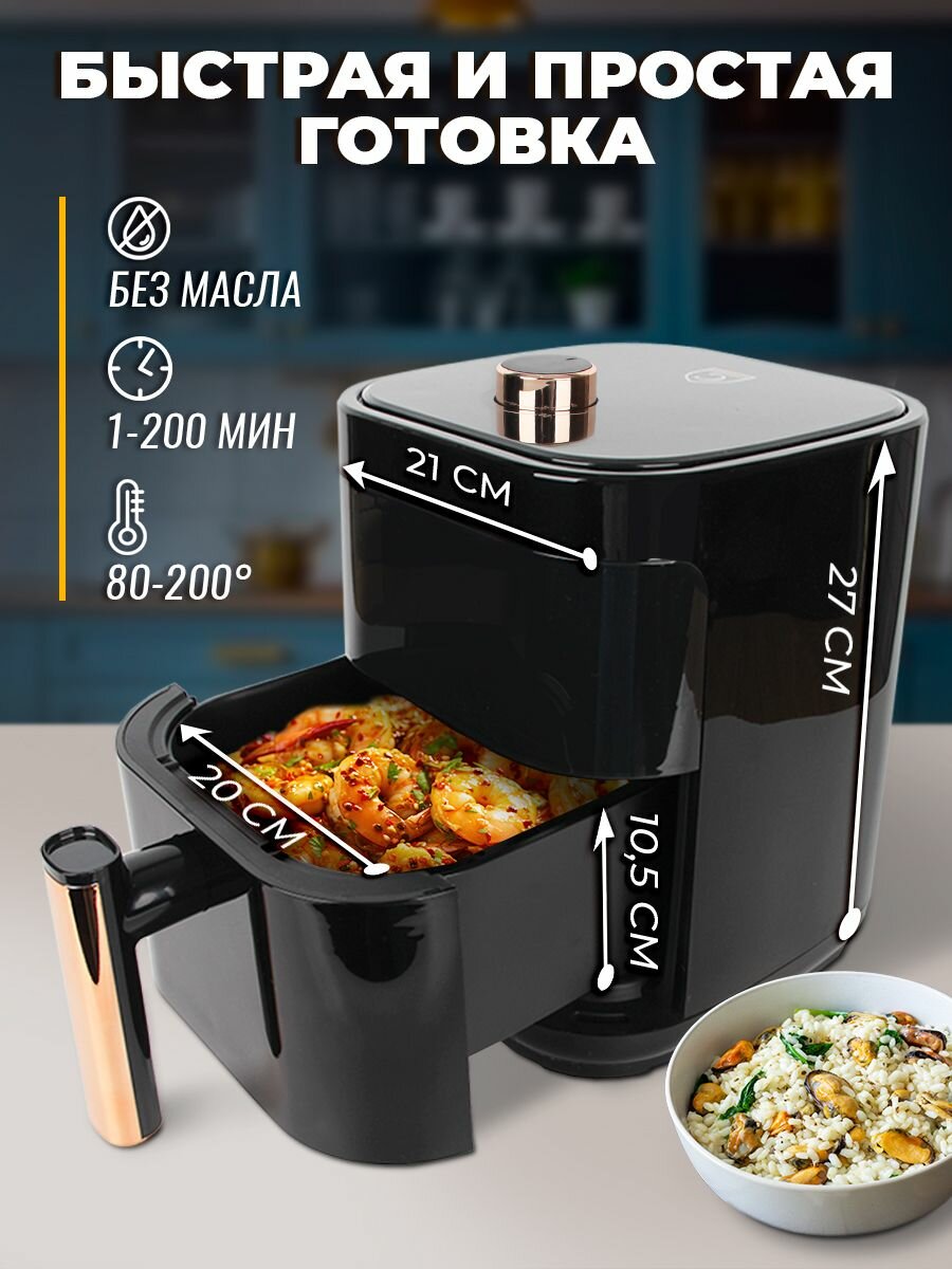 Аэрогриль электрический Classmark CH24022801 аэрофритюрница для дома, мощность 1400 Вт, объем 5 литров, черный интересное: