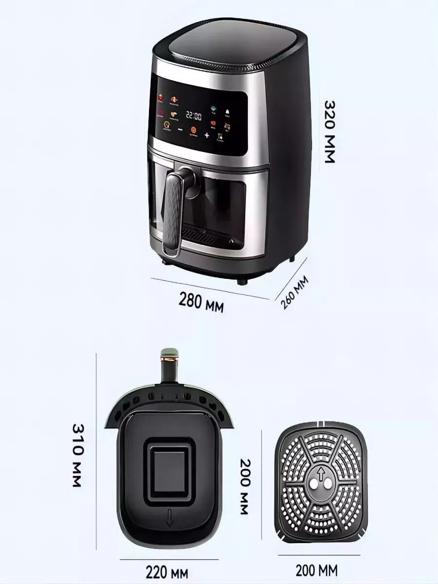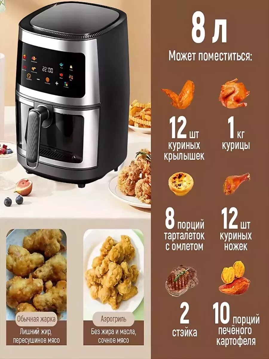 Аэрогриль Oulemei 8 в 1 сенсорная панель, съемная чаша интересное: