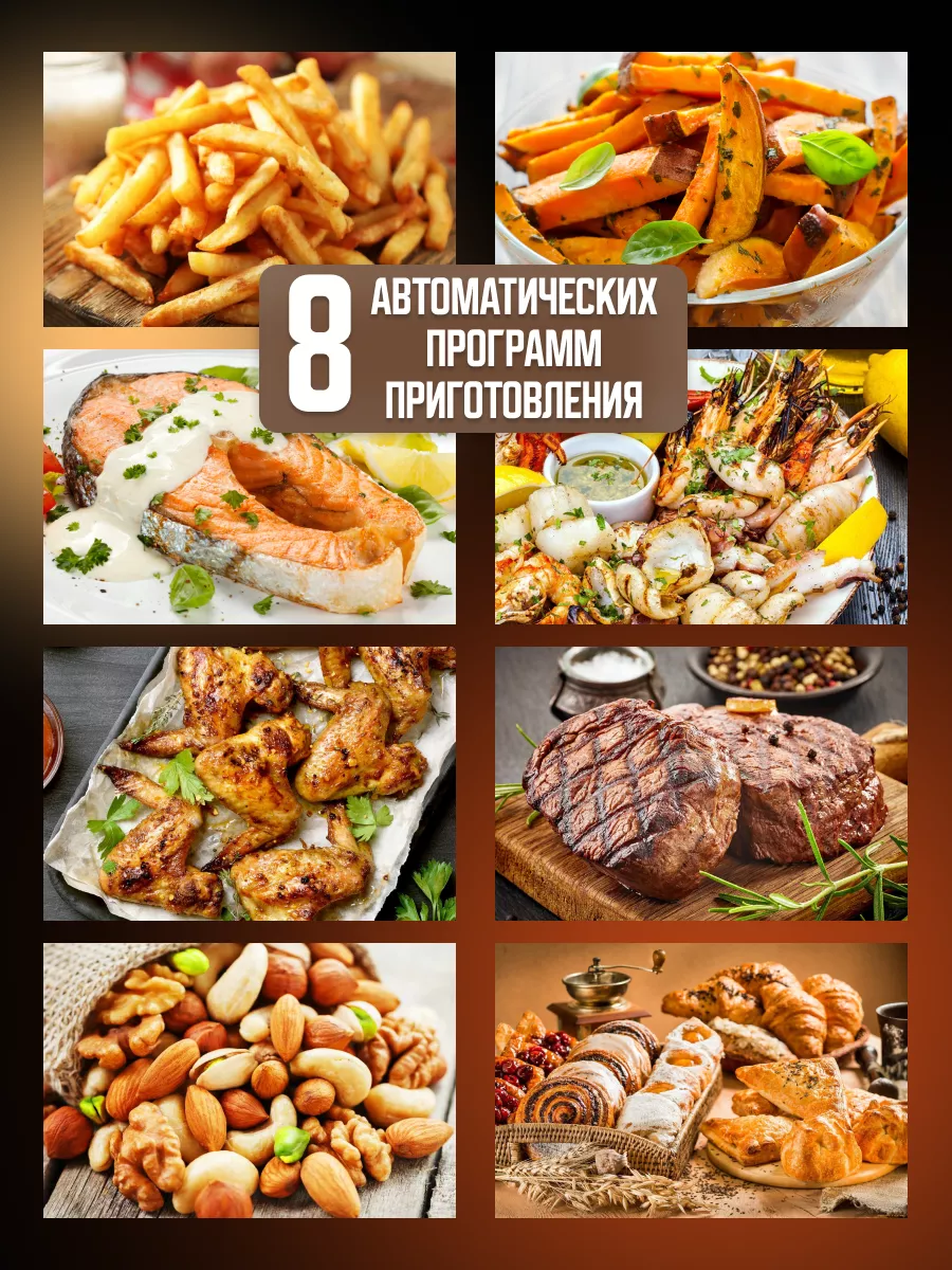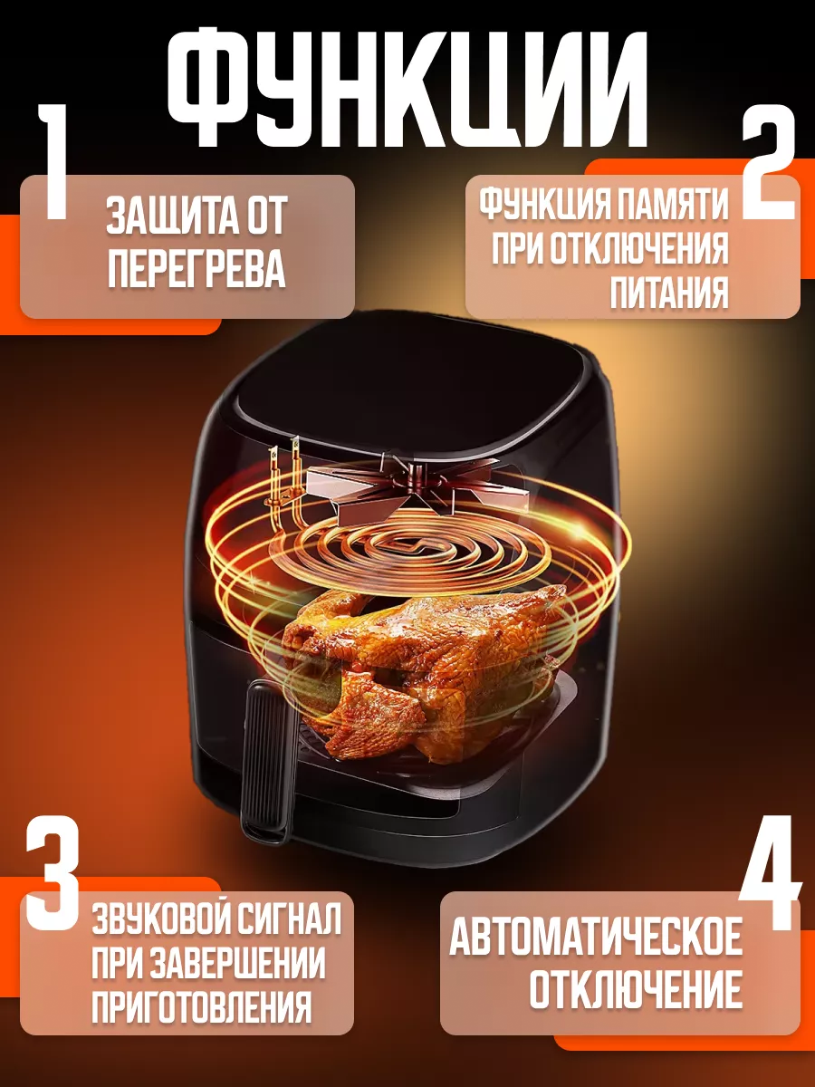 Аэрогриль черная, Аэрофритюрница электрическая/ 8 программ приготовления/объем 8 л /Мультипечь для кухни 1350 Вт интересное: