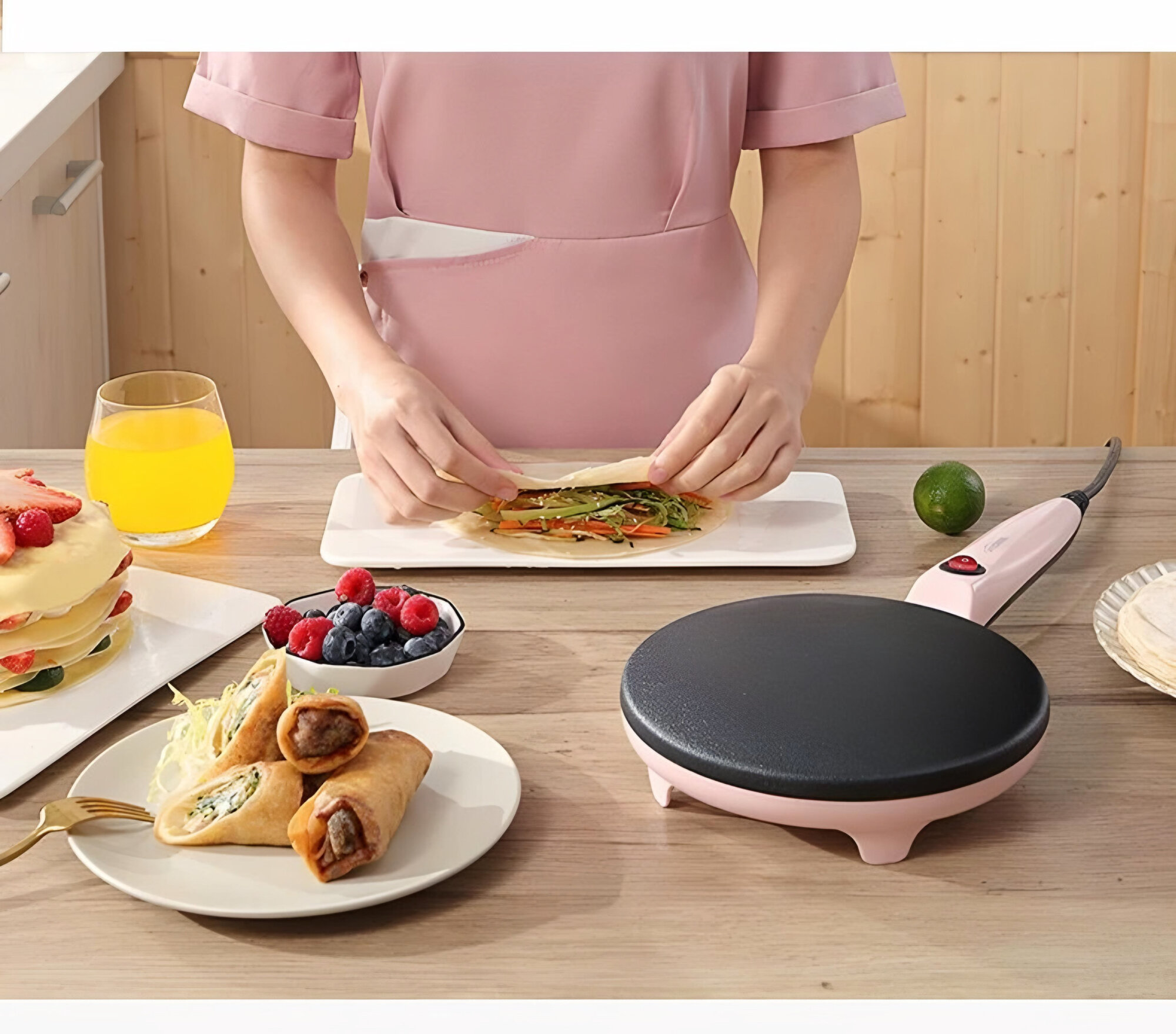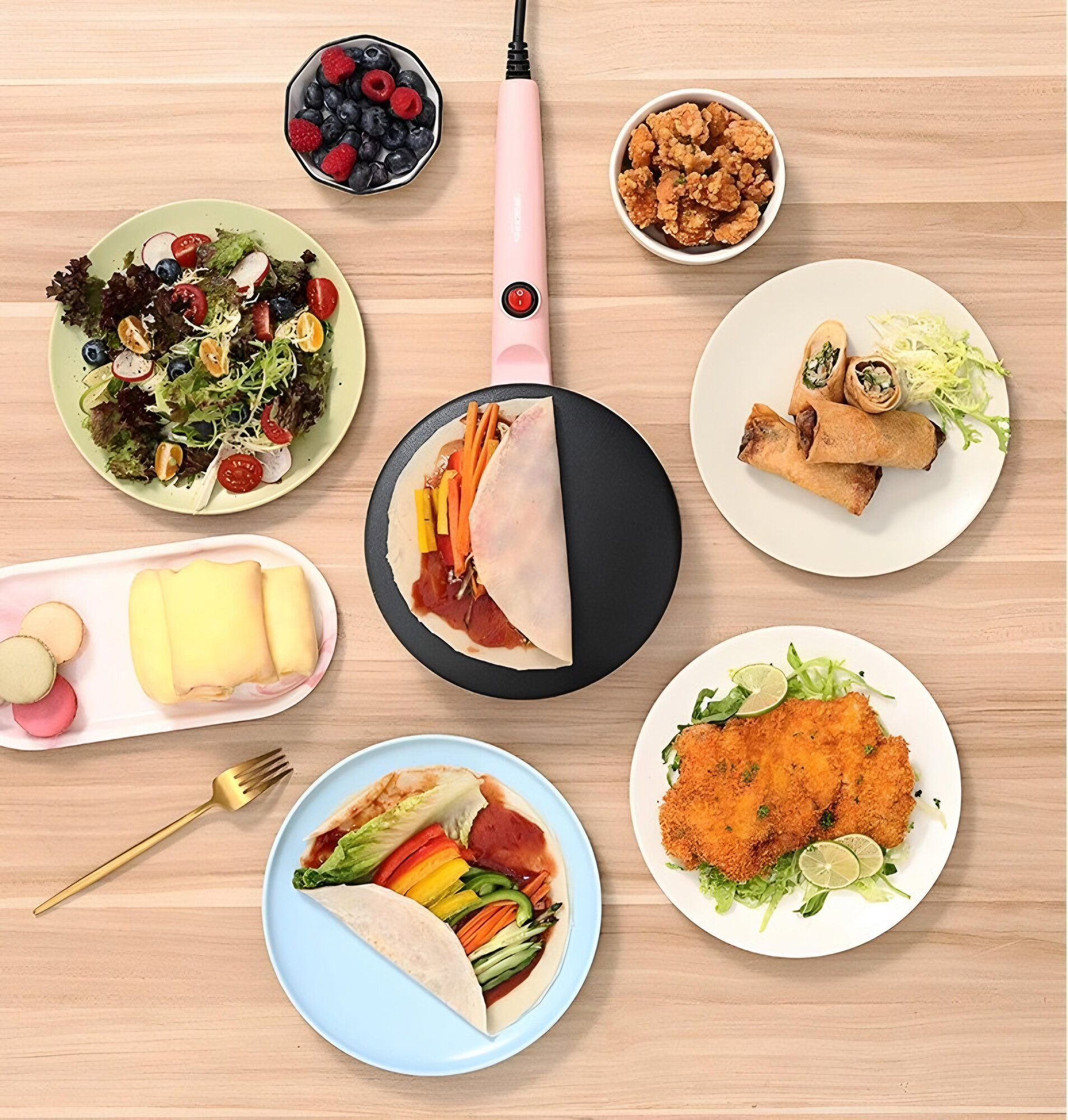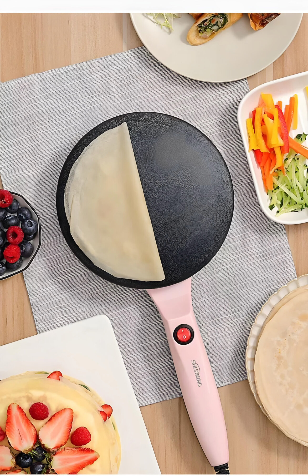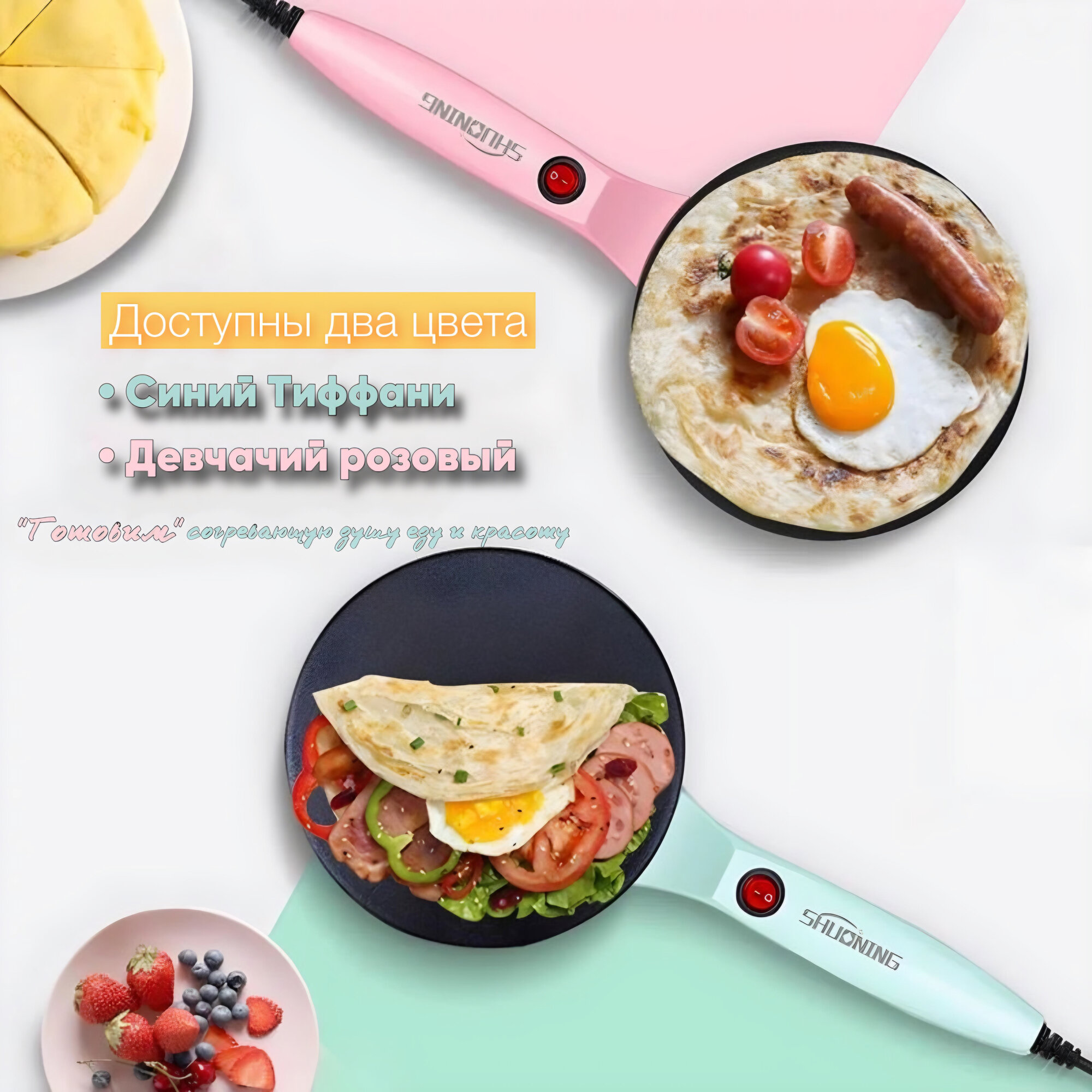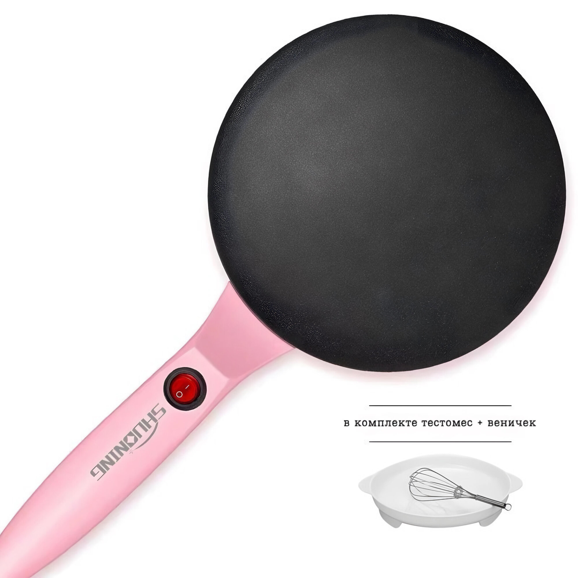 Купить Электрическая блинница погружная Shuoning+ блюдце для теста и веничек в подарок, розовая