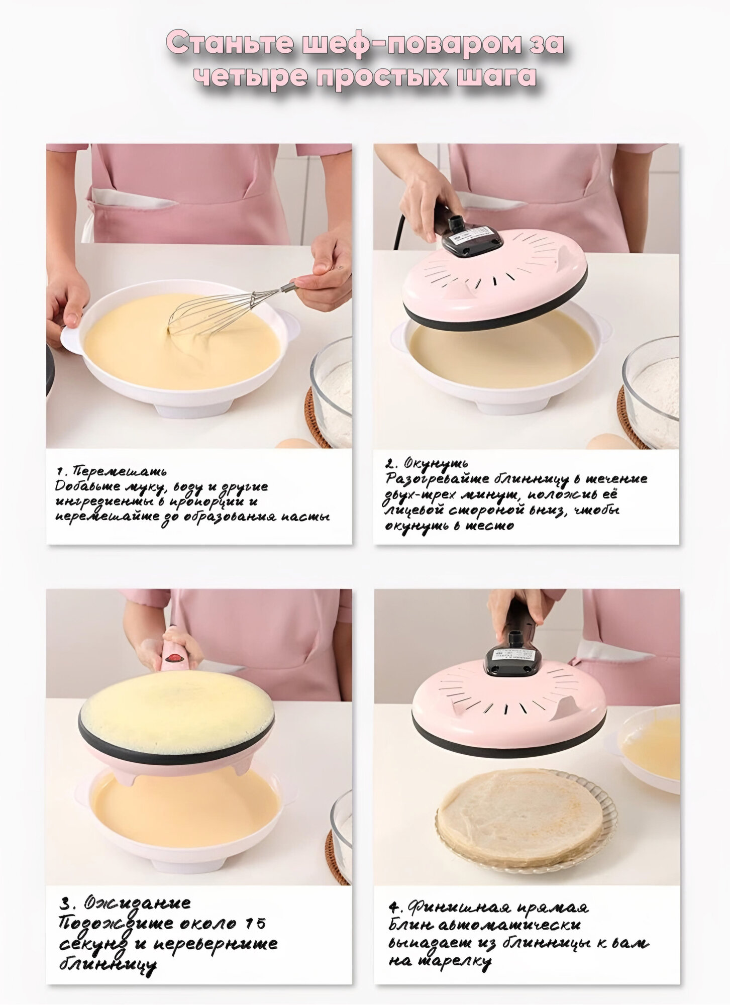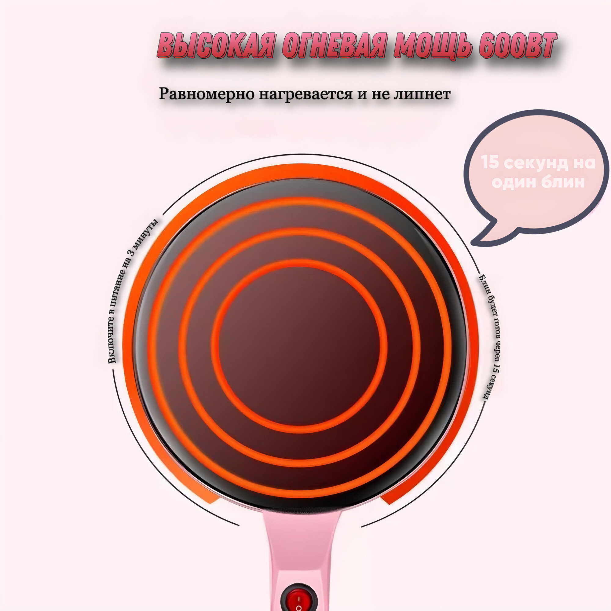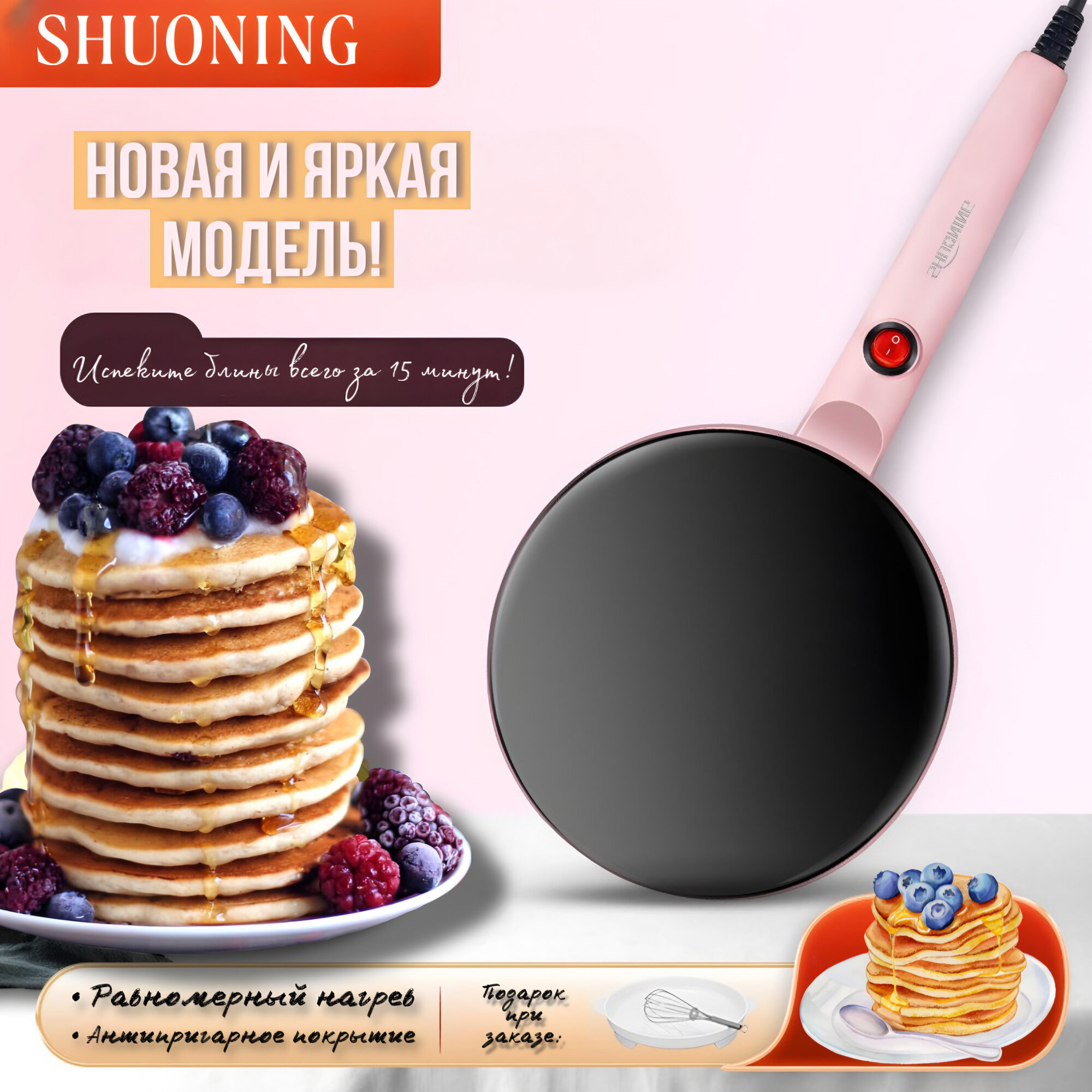 Электрическая блинница погружная Shuoning+ блюдце для теста и веничек в подарок, розовая интересное: