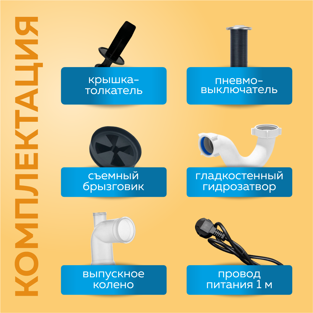 Измельчитель пищевых бытовых отходов AIRHOT FWD-550. 0.550 кВт, 3600 об/мин, 3 стадии перемолки