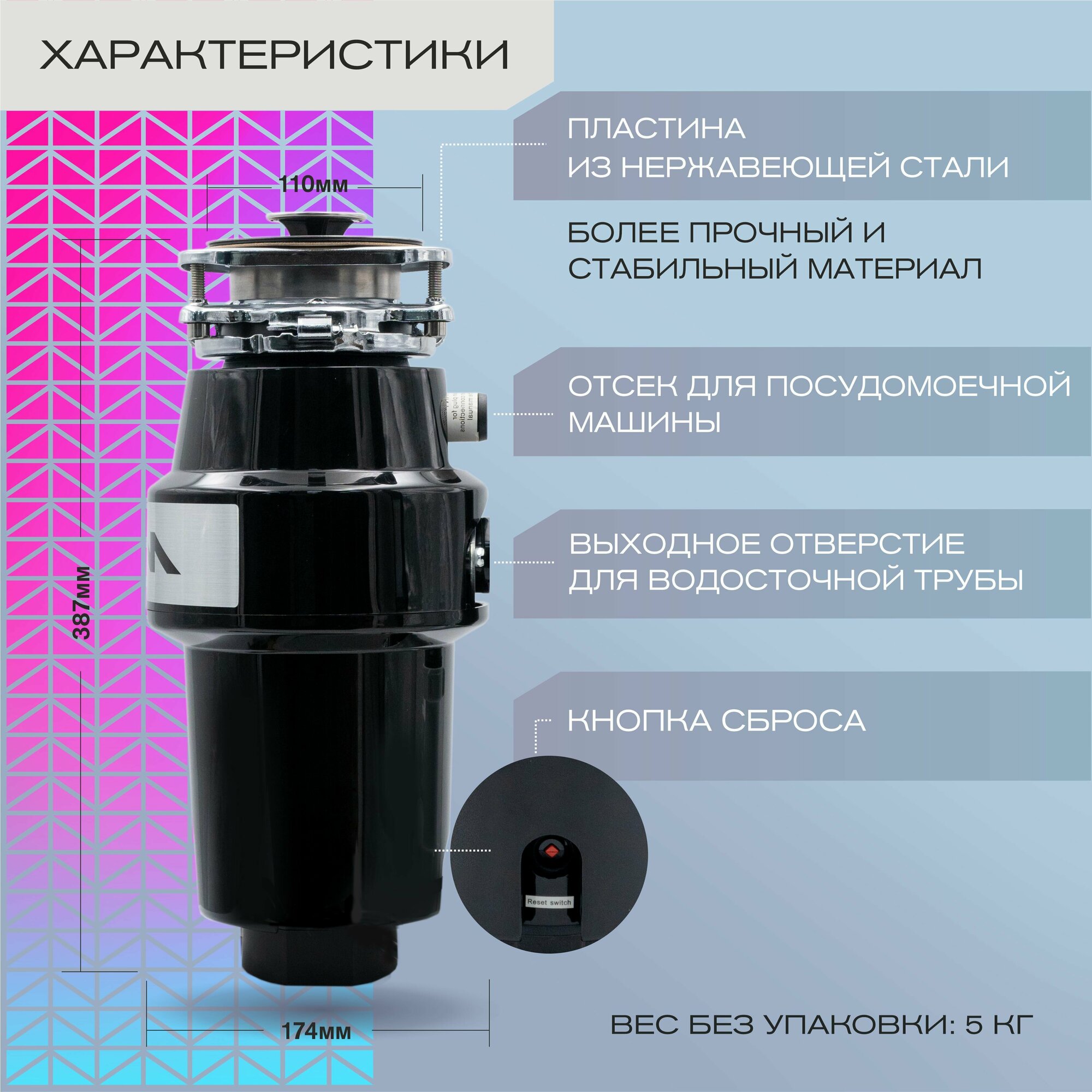 Измельчитель пищевых бытовых отходов AIRHOT FWD-550. 0.550 кВт, 3600 об/мин, 3 стадии перемолки