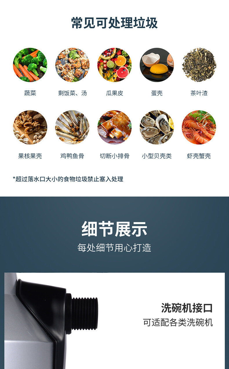 Кухонный измельчитель пищевых отходов Xiaomi Mensarjor Smart Anti-card Automatic Water Inlet Food Waste Disposer Black (LD900-F07)