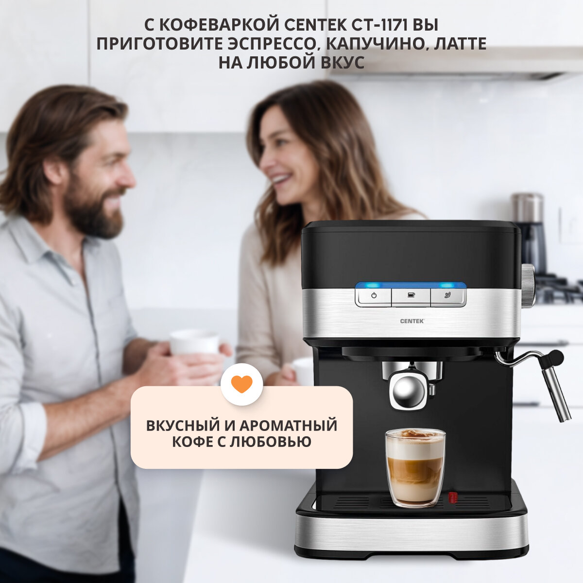 Кофемашина рожковая с капучинатором, кофеварка Centek 3в1 CT-1171, черный интересное:
