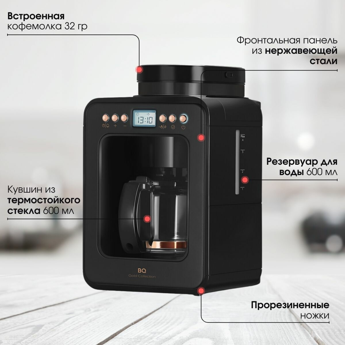 Капельная кофеварка со встроенной кофемолкой BQ (CM7000) Розовое Золото-Черный