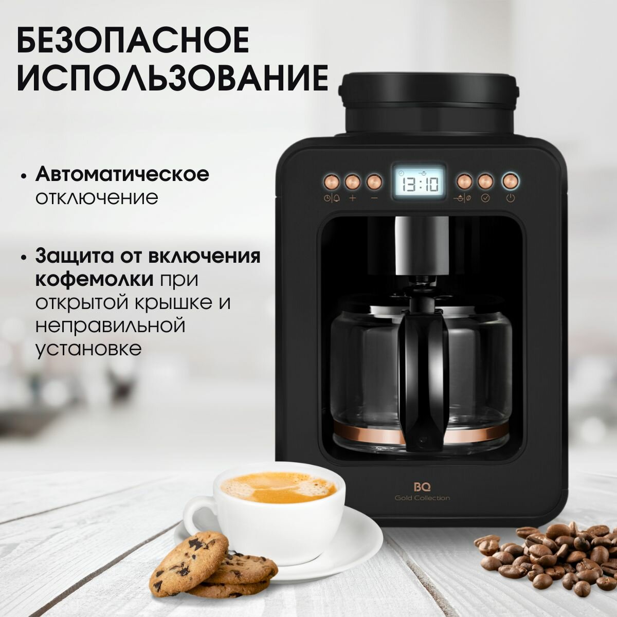 Капельная кофеварка со встроенной кофемолкой BQ CM7000 Розовое Золото-Черный