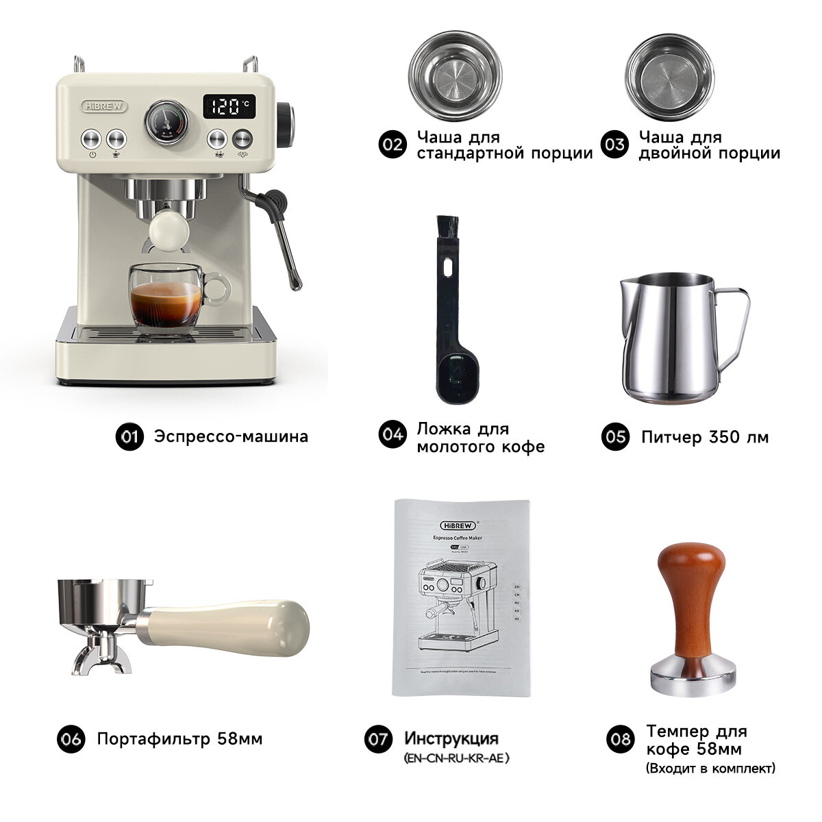 Купить Полуавтоматическая кофемашина для эспрессо HiBREW H10A yellow 19Bar с регулируемой температурой