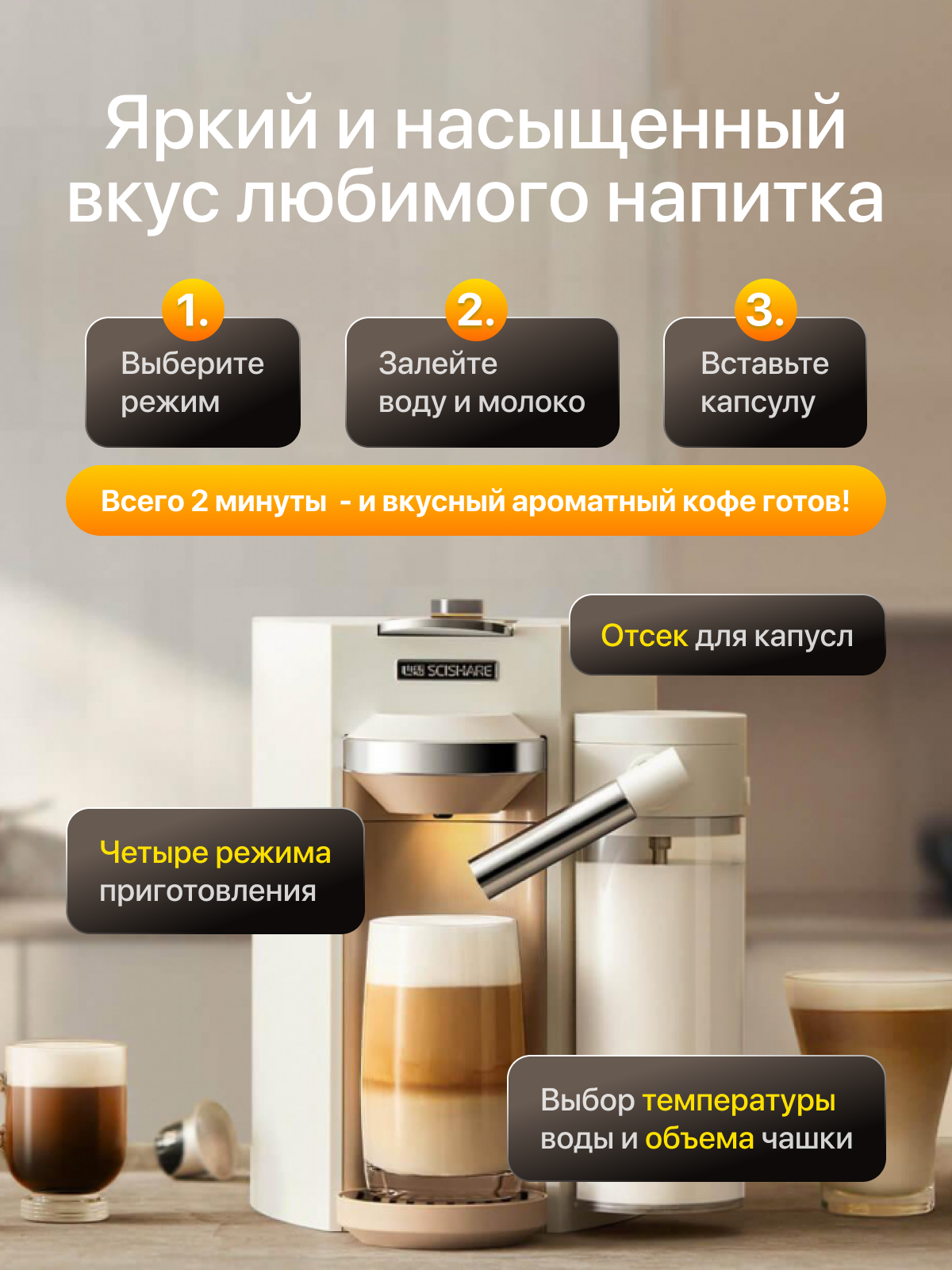 Капсульная кофемашина Xiaomi Scishare Fancy Capsule Coffee Machine Beige (S1205) интересное: