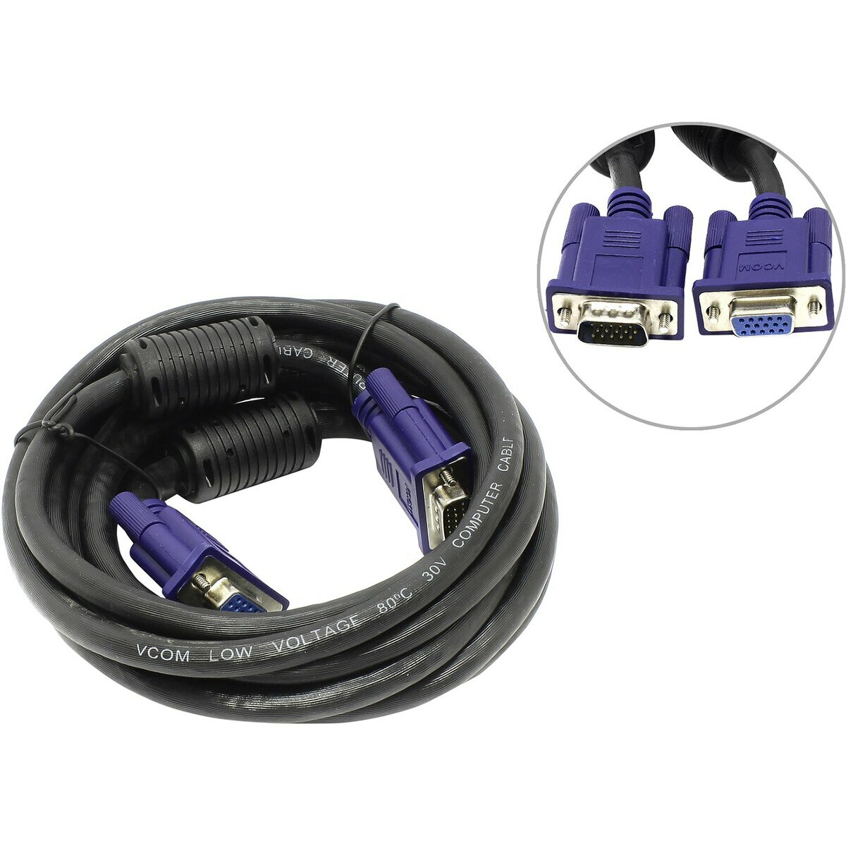 Vcom VVG6460-3MO Кабель удлинительный Монитор-SVGA card 15M-15F 3m, 2 фильтра