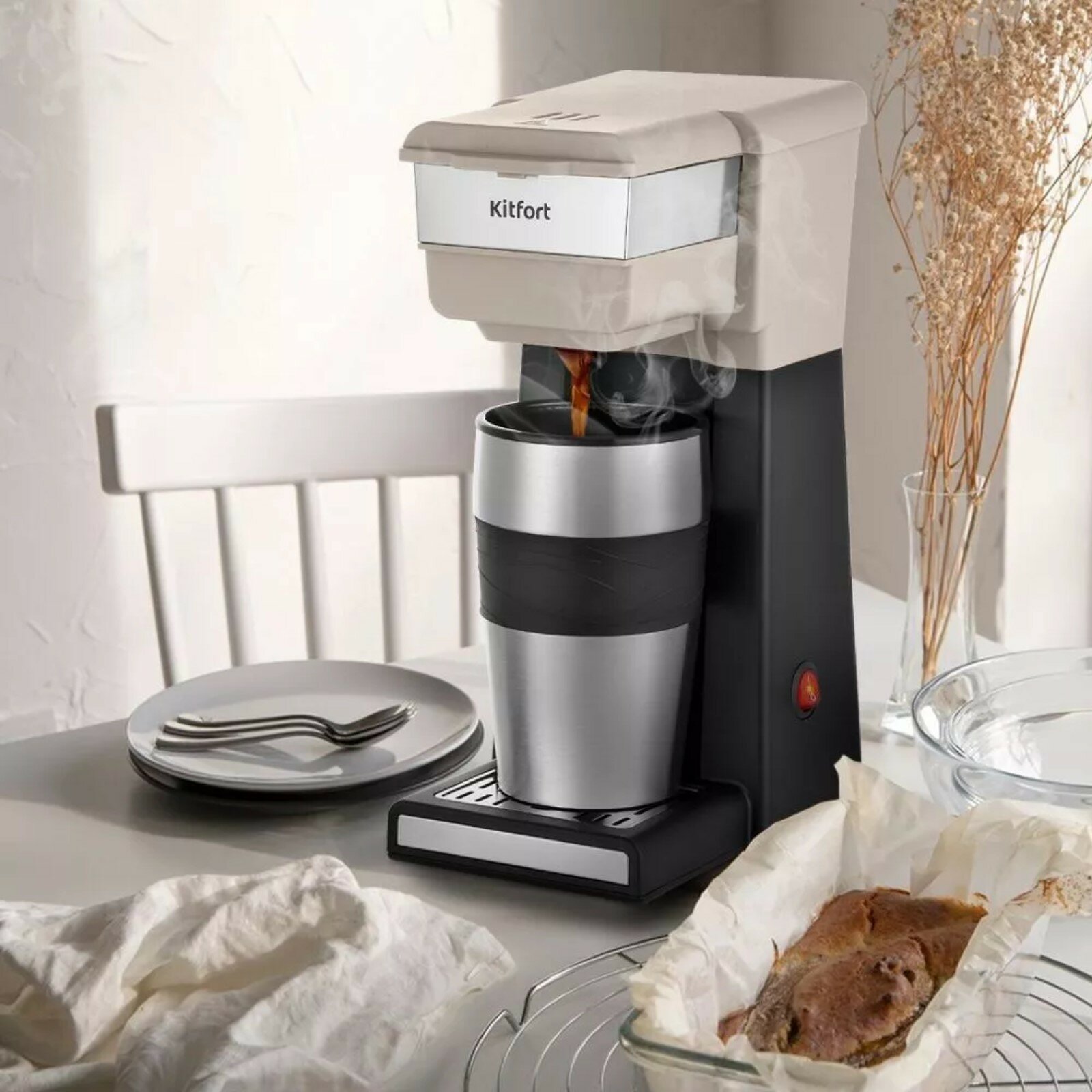 Кофеварка Kitfort КТ-7311, капельная, 750 Вт, 0,42 л, бежево-чёрная интересное: