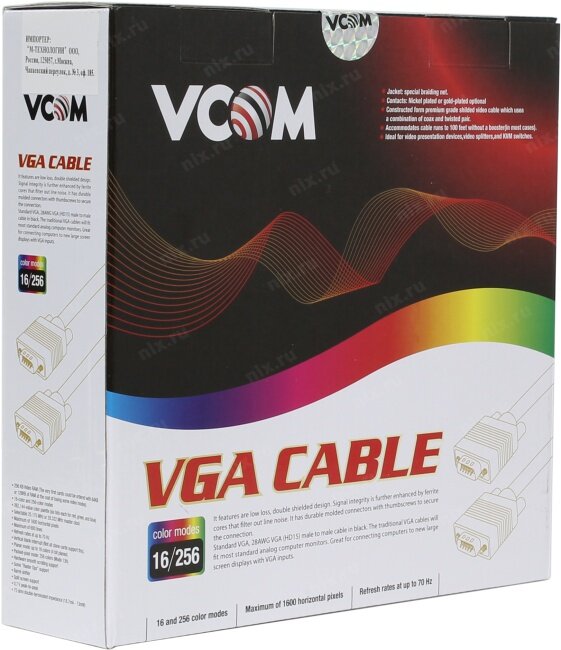 | Плюсы: | Что понравилось. Фирменная упаковка, толстый экранированный провод указанной длины. Брал для проектора. Все супер. Работает без искажения изображения от компа. |