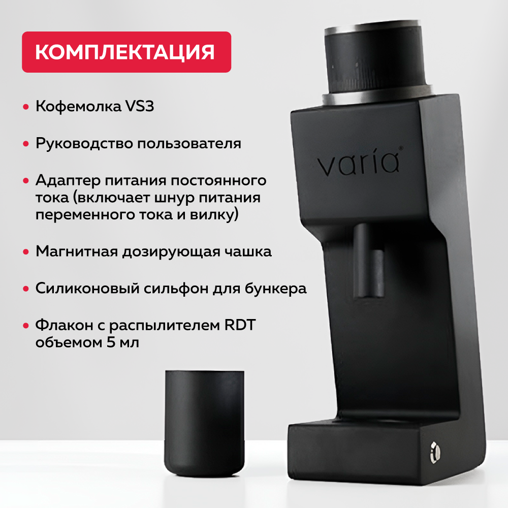 Кофемолка электрическая Varia VS3 черная, с мерным стаканчиком, стальные конические жернова 38мм