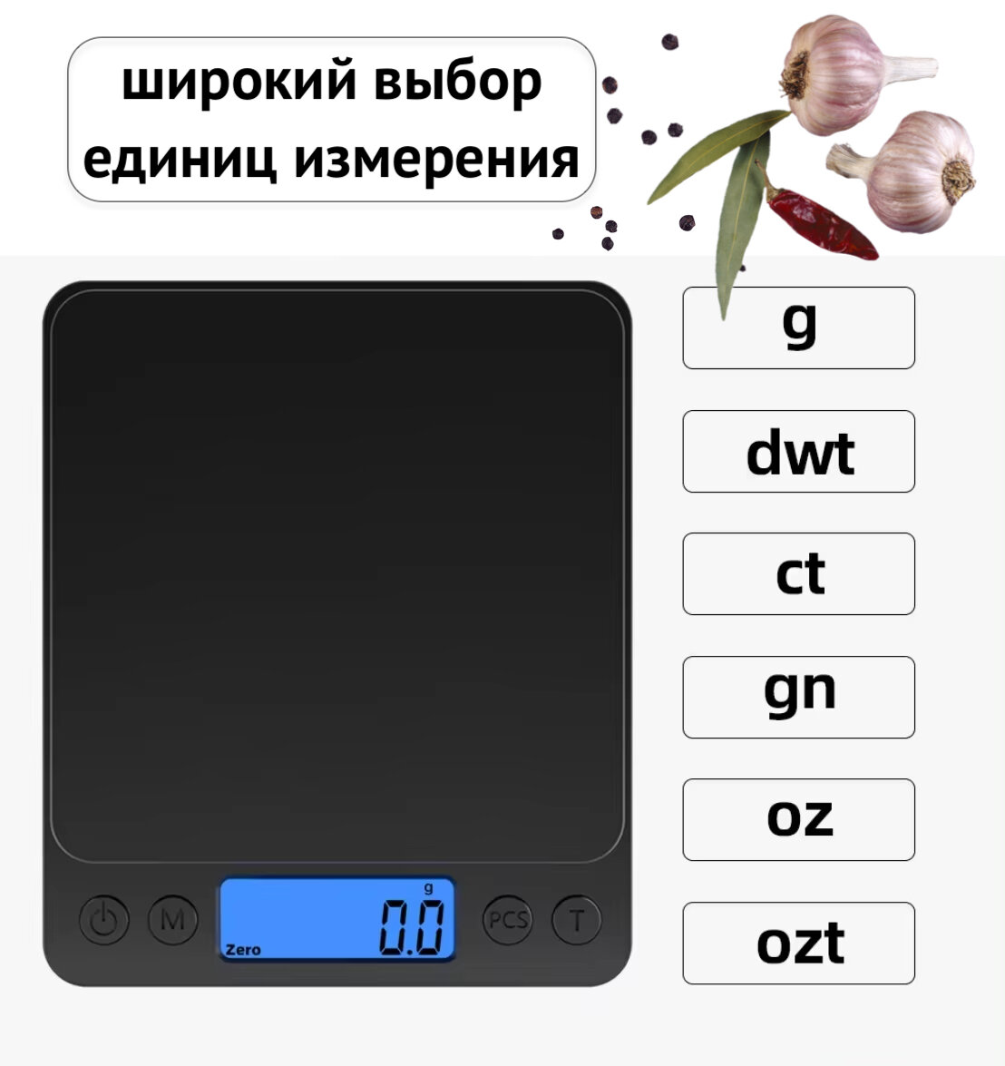 | Единицы измерения | граммы / гран / караты / стоуны / унции / фунты |