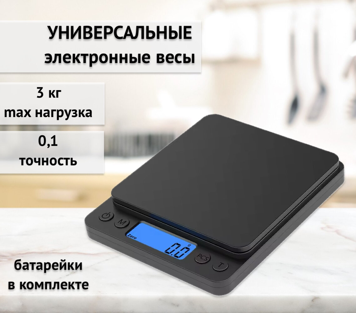 Высокоточные весы до 3 кг кухонные / электронные/ для парикмахеров/ ювелирные/точность 0,1 гр. цвет: черный интересное: