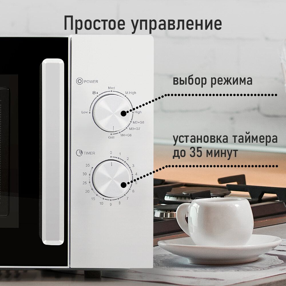 Микроволновая печь FS MWO D 20.10 WH, Сенсорное управление, 6 программ для приготовления, антипригарная эмаль, таймер, блокировка от детей.