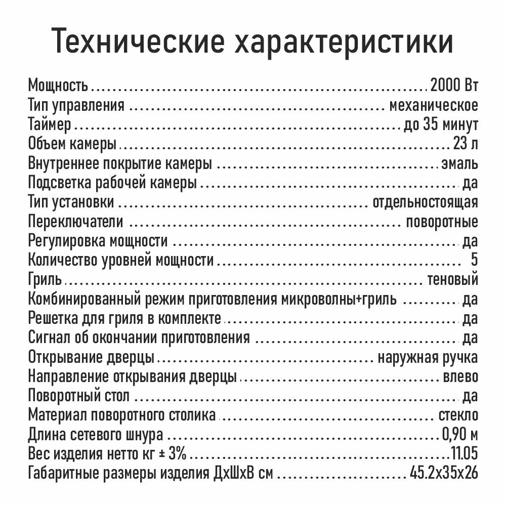 | Мощность микроволн | 2000 Вт |
