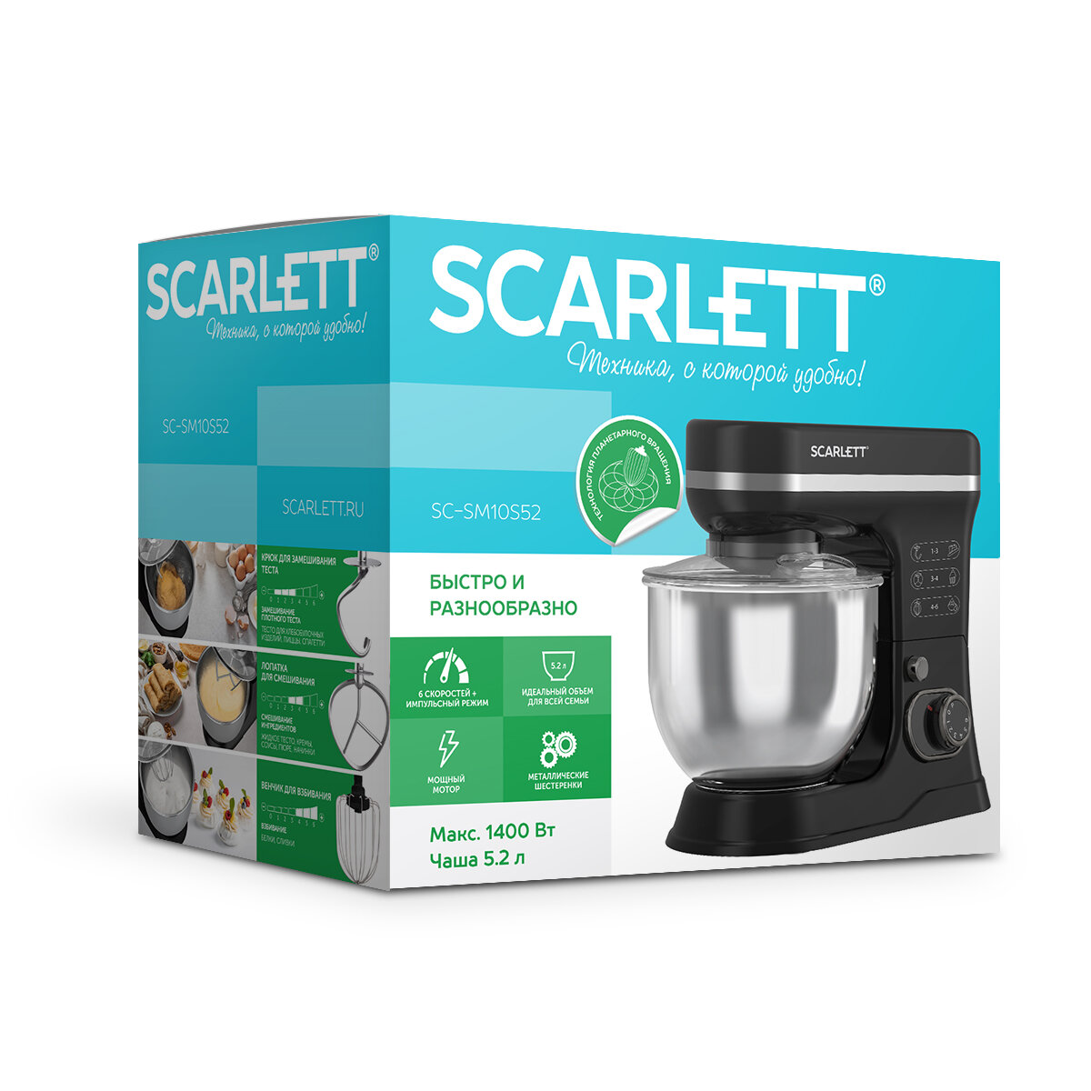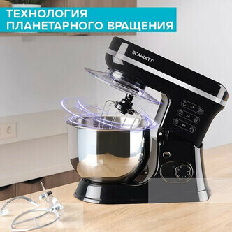 Миксер Scarlett SC-SM10S52 планетарный, 1400Вт, 6 режимов, черный, 1954797