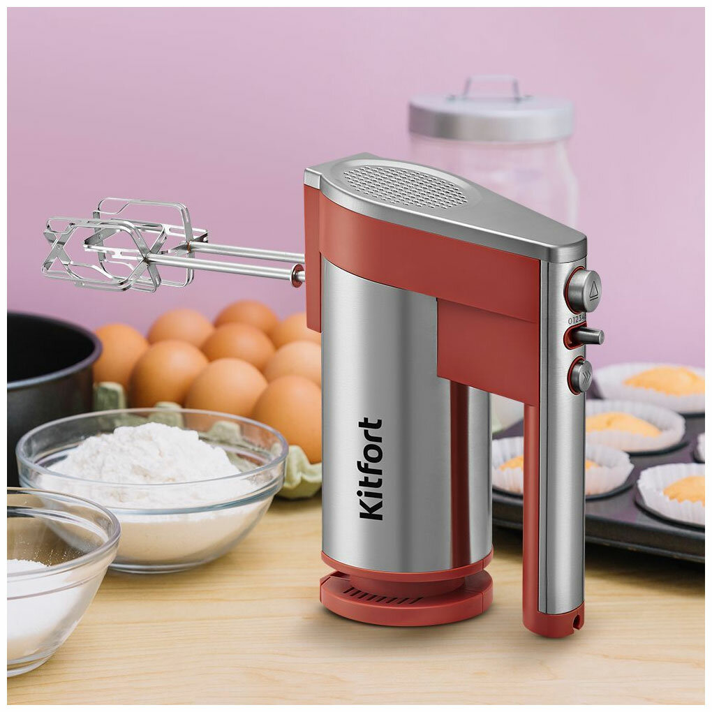 Миксер Kitfort КТ-3426, ручной, 300 Вт, 5 скоростей, оранжевый интересное: