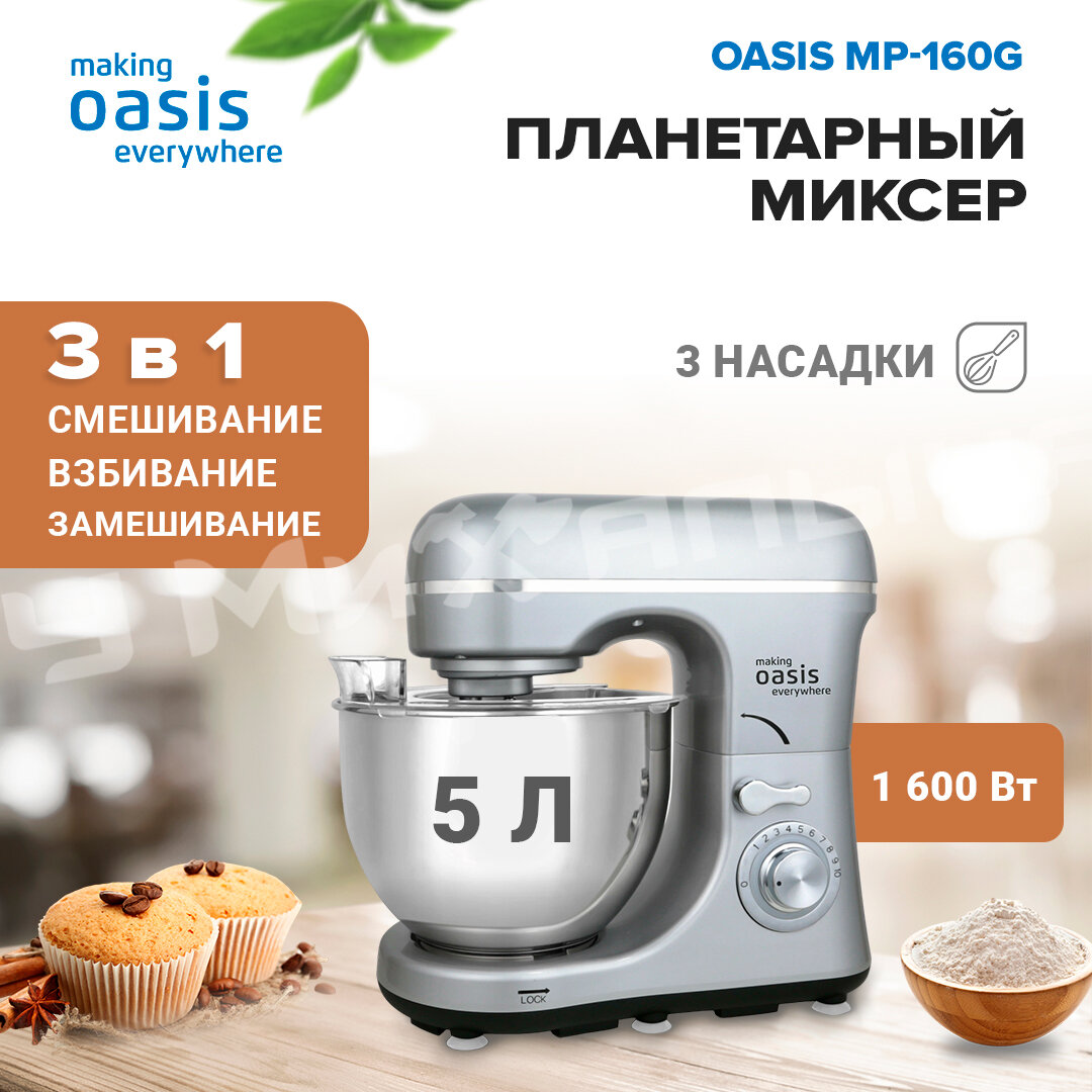 Миксер планетарный с чашей кухонный making Oasis everywhere MP-160G интересное: