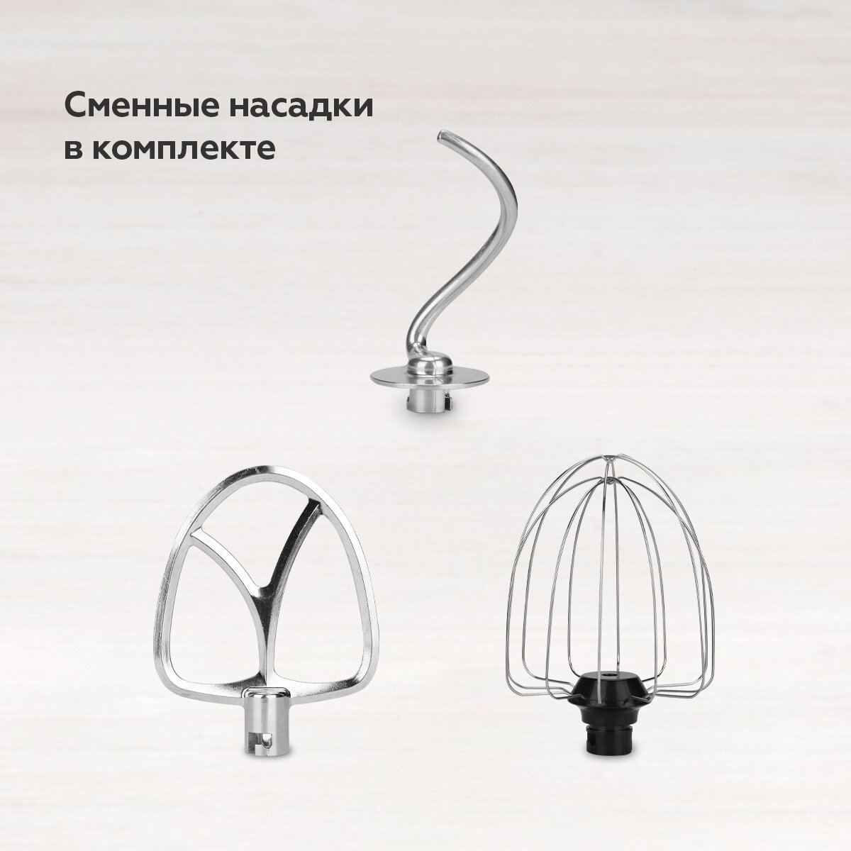 | Насадки | венчик для взбивания / крючки для замешивания теста / лопатка |