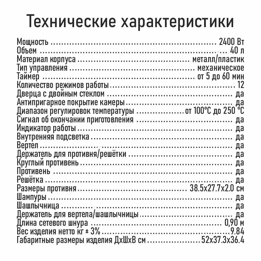 Мини-печь GURMAN GR-HL630, 63л, 2200Вт.