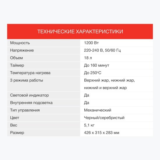 | Режимы | верхний нагрев / верхний+нижний нагрев / нижний нагрев |